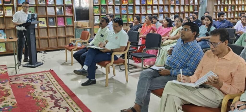 रायपुर,,पंडित रविशंकर शुक्ल विश्वविद्यालय के पं. सुन्दरलाल शर्मा ग्रंथागार में निंबस एमलाइब्रेरी आफ कैंपस एक्सेस विषय पर निंबस साॅफ्टवेयर के समुचित उपयोग हेतु दिनांक 17 अप्रैल को समय दोपहर 12ः00 से 1ः00 बजे तक ग्रंथागार के सभाकक्ष में उपयोगकर्ता प्रशिक्षण कार्यक्रम आयोजित किया गया।