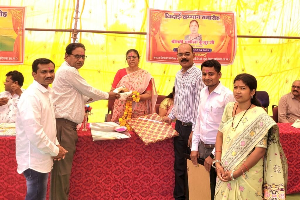 पाण्डुका/हाई स्कूल घटकर्रा में विदाई कार्यक्रम व परीक्षा फल हाई स्कूल घटकर्रा में सेवारत प्राचार्य एस .कुजूर एवं एस. हीरा नायडू का विदाई समारोह का आयोजन हुआ जिसमें विद्यालय परिवार के साथ बड़े संख्या में ग्रामीण छात्र/छात्राएं उपस्थित थे । विद्यालय परिवार से संजय वर्मा ,दीपक नाग , लक्ष्मी दीवान ,ओमप्रकाश साहू, उमेश साहू,वीरेंद्र साहू,टीकेश साहू,तारेंद्र निर्मलकर ,रितुपर्णा साहू,बिराजो साहू द्वारा स्मृति भेंट कर दोनों का सम्मान किया गया । शाला प्रबंधन समिति के अध्यक्ष गुणित राम साहू,सरपंच पार्वती कंवर सरपंच प्रतिनिधि राजेन्द्र कंवर ,उप सरपंच मन्नू पटेल ,पंच सुखबाई कंवर ,पालक सदस्य ईश्वर लाल साहू,धीरपाल साहू, गेंदुराम साहू,गिरवर कश्यप ,लालजी साहू ,चेतन दीवान,ओमप्रकाश दीवान ,खुश राम पटेल,रमेश कुमार ध्रुव,गिरवर साहू,लक्ष्मण साहू,दिनेश साहू,नीलकमल साहू,आसरा, चित्रसेन निर्मलकर ,यामिनी साहू,केशर साहू,किरण विश्वकर्मा,सत्यभामा पटेल,दशोदा बाई यादव द्वारा स्मृति चिन्ह भेंट कर सम्मान किया गया । कार्यक्रम का सफल संचालन दिनेश वर्मा द्वारा किया गया ।साथ ही विद्यालय का कक्षा नवमीं का वार्षिक परीक्षाफल घोषित किया गया । विद्यालय में कु.देविका पिता ईश्वर साहू घटकर्रा 97% से साथ प्रथम ,कु.वीना पिता नीलकमल साहू आसरा 96% द्वितीय ,कु.मेघा पिता गौतम कुमार आसरा 93% तृतीय ,कु.रीना पिता चित्रसेन निर्मलकर चतुर्थ ,कु.दामिनी पिता लोमश राम साहू आसरा 86% पंचम व कु.वंदना पिता महेंद्र निर्मलकर घटकर्रा 84% छटवें ,कु.डाली पिता नंदकुमार घटकर्रा 80% के साथ सातवें स्थान पर रहीं ।