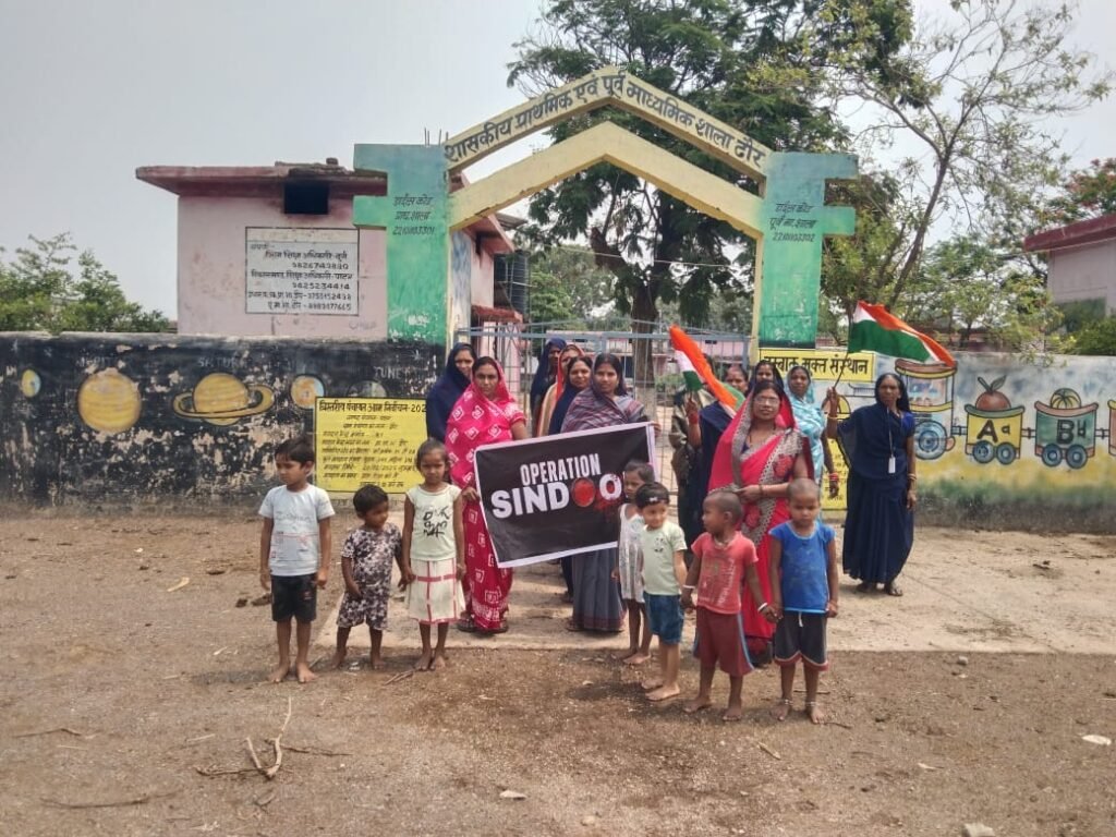 पाटन। अपरेशन सिंदूर की सफलता और वीर जवानो के शौर्य और पराक्रम के शान मे छत्तीसगढ़ के सभी ग्रामो मे तिरंगा यात्रा निकाली गई। ग्राम पंचायत ढौर मे तिरंगा यात्रा निकाली गई । जिसमे प्रमुख रूप से गांव के प्रथम नागरिक मेघा यशवंत ठाकुर और गांव के आगनबाड़ी कार्यकर्ता और गांव के प्रबुद्ध नागरिक एवं स्कूल के बच्चे शामिल हुए।