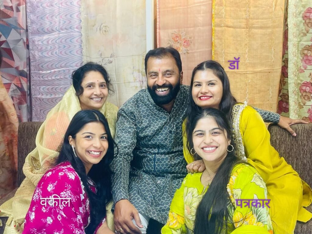 जामगांव आर। बेटा और बेटी संतान में माता पिता की सोच में बेटा को पहली प्राथमिकता देने में चाहे अनचाहे तो मन बेटा को ही प्राथमिकता देते आया है क्योंकि बेटा कुल दीपक माना जाता है लेकिन जमाना करवट बदल रही है बेटा की बहु आने के बाद माता पिता को वृद्धा आश्रम भेजने की बढ़ती कवायद किसी छुपी नहीं है।शासन और समाज में प्रोत्साहन एवं जागरूकता बेटियों के प्रति बढ़ी है जिसका सीधा सीधा असर स्कूलों और कॉलेजों में बेटियों की प्रतिभा प्रदर्शन बेटों की अपेक्षा काफी उम्दा कंठ मुक्त प्रशंसनीय परिणाम सामने आने लगी है।माता अंजू पिता प्रकाश गोलछा के साथ तीनों बहने डॉ सजल गोलछा,गोल्ड मेडलिस्ट पत्रकार सुरभि और वकील विधि गोलछा खुशियां का इजहार करते हुए।तीन बहने डाक्टर पत्रकार वकील बन रचा इतिहास,,,,