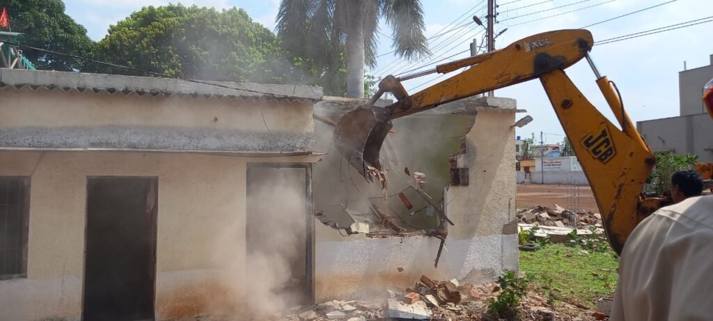 भिलाई। वैशाली नगर क्षेत्र शांति नगर में नया पुलिस थाना बनाया जा रहा है। जिसके चारों तरफ बाउंड्री वालों का निर्माण किया जाना है। आधे क्षेत्र में बाउंड्री वॉल का निर्माण हो गया है। थाने से लगे हुए मंदिर के समीप से लाइन से प्रस्तावित सड़क के ऊपर अवैध कब्जा कब्जाधारियों द्वारा नजूल के जमीन पर अतिक्रमण कर लिया गया था। उसे क्षेत्र का सीमांकन शासकीय राजस्व निरीक्षक नगर निगम का भवन अनुज्ञा विभाग, एवं जोन राजस्व विभाग द्वारा संयुक्त रूप से सीमांकन किया गया। सीमांकन में अवैध कब्जा मिला। संबंधित कब्जा धारी को अपना कब्जा रिक्त करने के नोटिस दिया गया । किसी के द्वारा भी अवैध कब्जा नहीं हटाया गया। जिसके कारण बाउंड्री वॉल निर्माण का कार्य प्रभावित हो रहा था। उसी के समीप सर्विस रोड का निर्माण एवं नाल नाली निर्माण प्रस्तावित है। आज नगर निगम की टीम जोन आयुक्त ऐशा लहरे के देख रेख में पुलिस बल के सहयोग से 7 अवैध कब्जे को रिक्त करवाया। प्रत्येक व्यक्ति द्वारा लगभग 3 से 4 हजार वर्ग फुट भूमि पर दीवाल निर्माण करके अवैध कब्जा कर लिया गया था। एक कब्जाधारी देवेंद्र कुमार अवैध कमरा बना करके उसे शबनम बानो को किराए पर दिया था। निगम की टीम जब वहां पहुंची तो वहां पर किराए पर रहने वाली महिलाओं द्वारा विरोध किया जा रहा था। निगम के कर्मचारी एवं पुलिस बल के ऊपर डंडा लेकर हमला करने का भी प्रयास किया गया। कुछ महिलाएं पुलिस के साथ भी उलझ गई। एक महिला शबनम बानो एवं पुरुष को पकड़ के वैशाली नगर थाने गिरफ्तार करके पुलिस ले ले गई। उनसे पूछताछ करने के लिए। कार्रवाई के दौरान एक वर्ग विशेष की एक ही उम्र के लगभग की महिलाएं एकत्रित हो गई थी। यह भी जानकारी मिली है कि जिस मकान में रह थे मकान मालिक देवेंद्र कुमार द्वारा इसकी सूचना पुलिस को नहीं दी गई है। पुलिस उसकी तहकीकात कर रही है। पुलिस विभाग के रिटायर्ड अधिकारी के अवैध कब्जे को थाना प्रभारिक अमित अदानी उपस्थिति में हटाया गया।कार्रवाई के दौरान भवन अनुज्ञा अधिकारी अधिकारी अरविंद शर्मा, राजस्व अधिकारी शरद दुबे, जोन स्वास्थ्य अधिकारी अनिल मिश्रा, अभियंता श्वेता वर्मा, तोड़फोड़ प्रभारी हरिओम गुप्ता, जोन स्वच्छता निरीक्षक अंजनी सिंह, हरि ताम्रकार , मदन मोहन तिवारी, लोकेश बया, कृष्ण कुमार सुपेल, प्रतीक, समीर, शासकीय राजस्व निरीक्षक नरसिंह साहू , पुलिस विभाग के थाना प्रभारी एवं पुलिस बल की उपस्थिति में कार्रवाई की गई ।