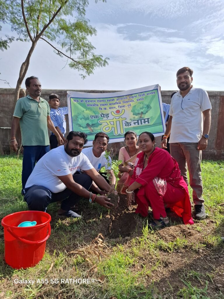 एक पेड़ मां के नाम के तहत शाला प्रांगण में पौधरोपण कर पर्यावरण संरक्षण का संदेश दिया गया। मौके पर प्रमुख रूप से सरपंच भुनेश्वर साहू, प्राचार्य श्रीमती प्रीतिबाला साहू, टीकाराम देवांगन, प्रधान अध्यापक श्रीमती ममता सांडिल्य, उपसरपंच देवचरण कौशल, प्रधान पाठक मुकेश कुमार साहू, रोहित साहू, पूरनलाल साहू, शशिकांत देवांगन गोरेलाल श्रीवाश, श्रीमती प्रेमलता साहू, संतोषी साहू, एकता साहू, हेमू ठाकुर, पप्पू चाँदने, चित्रसेन कलियारी, महेंद्र साहू,राजेंद्र वर्मा सहित अन्य उपस्थित रहे।