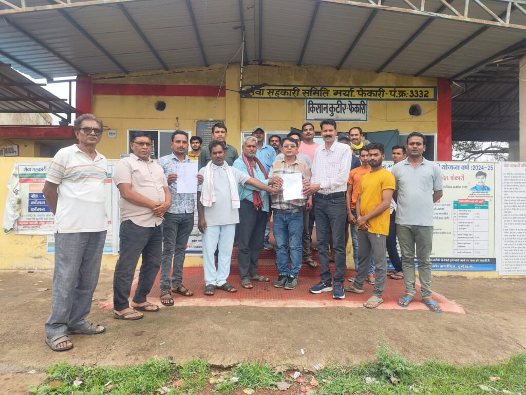 फेकारी सोसायटी के सामने खाद बीज के लिए प्रदर्शन कर सौंपा ज्ञापन