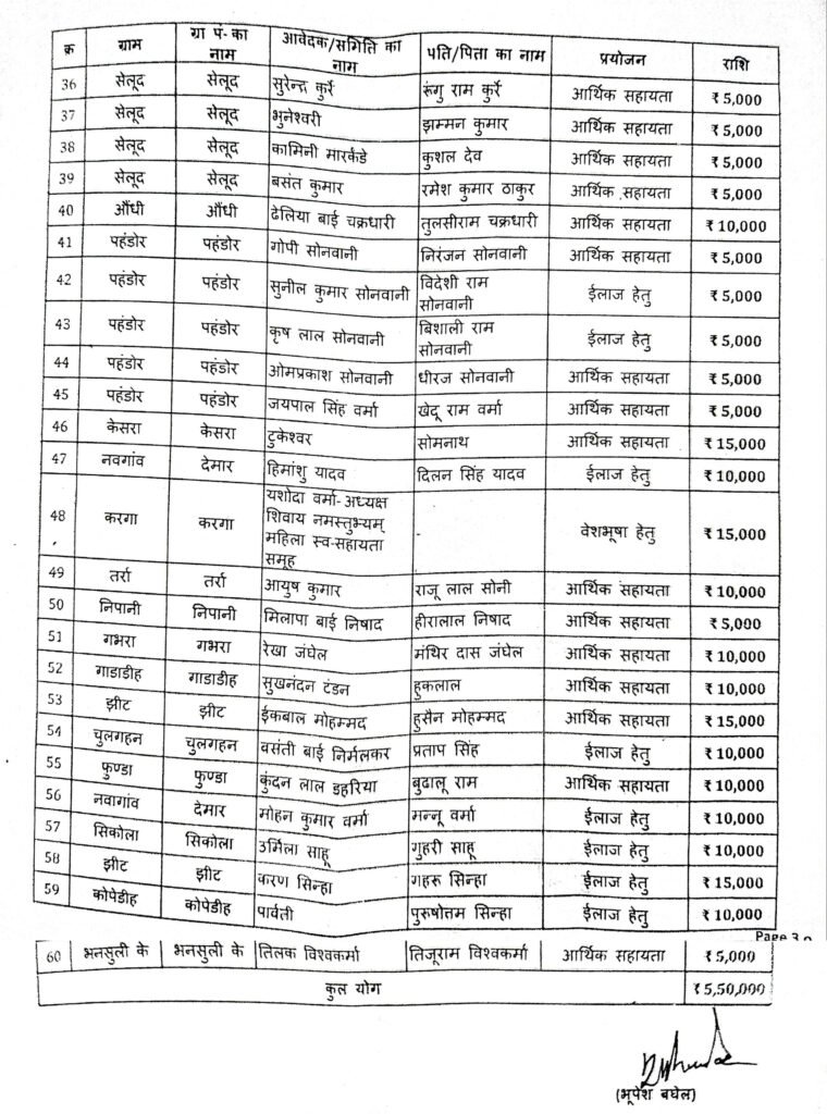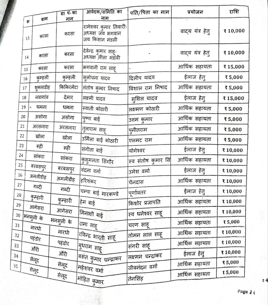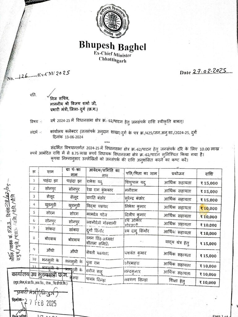 पाटन। छत्तीसगढ़ के पूर्व मुख्यमंत्री एवं पाटन विधायक भूपेश बघेल की अनुशंसा पर जनसंपर्क अनुदान राशि जारी हुआ है। राशि का का वितरण कल 2 जुलाई को दोपहर 3 बजे विश्राम गृह पाटन आयोजित कार्यक्रम में चेक के माध्यम से प्रदान किया जाएगा। देखिए पूरी सूची…….