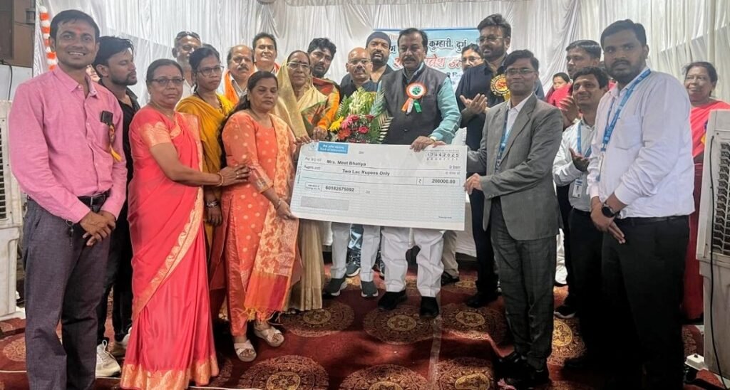कुम्हारी। नगर पालिका परिषद कुम्हारी अंतर्गत मंगलवार को प्रधानमंत्री जीवन ज्योति बीमा योजना के दावा का चेक वितरण दुर्ग सांसद श्री विजय बघेल एवं कुम्हारी नगर पालिका अध्यक्ष श्रीमति मीना वर्मा द्वारा किया गया। इस अवसर पर बीमाधारक सतपाल सिंह भाटिया की पत्नी श्रीमती मीत भाटिया ने बताया कि उनके पति ने कुछ वर्षों पूर्व नगर पालिका परिषद द्वारा आयोजित शिविर में प्रधानमंत्री जीवन ज्योति बीमा योजना की पालिसी बैंक आफ महाराष्ट्र कुम्हारी शाखा से ली थी एवं नियमित रूप से प्रति वर्ष बीमा राशि का भुगतान किया। अभी कुछ दिन पहले उनके पति की अचानक हृदय गति रूक जाने से मृत्यु हो गई, जिससे वो काफी मानसिक और आर्थिक रूप से टूट गई थी। अचानक उन्होंने अपने पति का पासबुक देखा जिससे उन्हें पता चला कि उनके पति ने प्रधानमंत्री जीवन ज्योति बीमा योजना अंतर्गत बीमा कराया था। फिर उन्होंने नगर पालिका में राष्ट्रीय शहरी आजीविका मिशन की टीम से सहयोग लेकर बैंक आफ महाराष्ट्र कुम्हारी शाखा में अपना बीमा दावा प्रस्तुत किया जहाँ शाखा प्रबंधक विकास रंजन द्वारा उनके प्रकरण को जांच मे सही पाकर उन्हें दो लाख रूपये भुगतान की अनुशंसा की गयी । इस राशि से उनके आर्थिक स्थिति में काफी सुधार आयेगा जिसके लिए उन्होंने शासन-प्रशासन और बैंक आफ महाराष्ट्र कुम्हारी शाखा को धन्यवाद दिया है। पालिका अध्यक्ष श्रीमती मीना वर्मा ने आमजन से आह्वान किया कि सभी प्रधानमंत्री जीवन ज्योति बीमा योजना तथा प्रधानमंत्री सुरक्षा बीमा योजना अंतर्गत अपना पंजीयन करायें और योजना का लाभ लेंवे। कार्यक्रम में भाजपा जिला अध्यक्ष सुरेन्द्र कौशिक, संजय बघेल, बैंक ऑफ़ महाराष्ट्र रायपुर अंचल प्रबंधक वी व्यंकटेश ,मुख्य प्रबंधक व्यापार विकास अधिकारी राहुल विकरवार एवं कुम्हारी शाखा प्रबंधक विकाश रंजन सहित