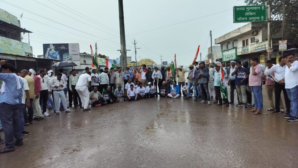 पाटन। प्रदेश कांग्रेस कमेटी के आह्वान पर छत्तीसगढ़ में आज 12 से 2 बजे तक आर्थिक नाकेबंदी के अंतर्गत ग्राम सेलूद में भी आर्थिक नाकेबंदी के तहत दोपहर 12 बजे से मूसलाधार बरसते पानी में दुर्ग से पाटन एवं धमतरी जाने के मार्ग बजरंग चौक में चक्काजाम किया जा रहा है बरसते पानी में ही कांग्रेसी ईडी के खिलाफ नारे लगाते हुए सड़क में डटे हुए है