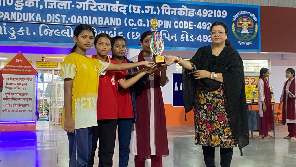 पाण्डुका — पीएम श्री स्कूल जवाहर नवोदय विद्यालय ग्वालियर (म.प्र.) में क्षेत्रीय स्तरीय कबड्डी मीट 2025-26 का आयोजन हुआ। जिसमें रायपुर संकुल टीम का नेतृत्व पीएम श्री स्कूल जवाहर नवोदय पाण्डुका, जिला-गरियाबंद को मिला। इस प्रतियोगिता में रायपुर संकुल के विभिन्न जवाहर नवोदय विद्यालयों के लगभग 24 बालक एवं 24 बालिकाओं ने भाग लिया। प्रतियोगिता में रायपुर संकुल ने अंडर 14 बालक वर्ग में विजेता, अंडर 17 बालिका वर्ग में विजेता एवं अंडर 17 बालिक वर्ग उपविजेता, अंडर 19 बालिका वर्ग उपविजेता स्थान प्राप्त कर शानदार प्रदर्शन किये।