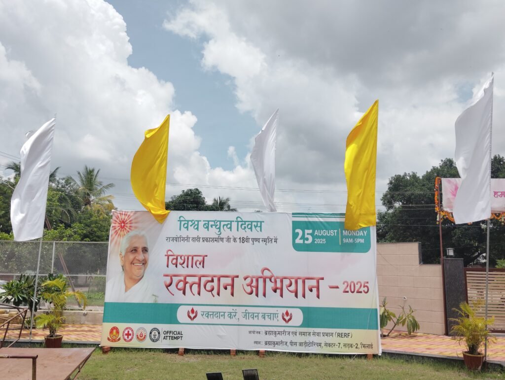 भिलाई।अंतर्राष्ट्रीय संस्था प्रजापिता ब्रह्माकुमारी ईश्वरीय विश्व विद्यालय की पूर्व मुख्य प्रशासिका राजयोगिनी दादी प्रकाशमणि जी की 18वीं पुण्यतिथि के उपलक्ष्य में सम्पूर्ण विश्व में 25 अगस्त को विश्व बंधुत्व दिवस के रूप में मनाया जा रहा है। इस अवसर पर ब्रह्माकुमारीज एवं राजयोगा एजुकेशन एंड रिसर्च फाउंडेशन (RE&RF) के समाज सेवा प्रभाग द्वारा 6000 से अधिक सेवा केंद्रों पर एक लाख यूनिट से अधिक रक्तदान का महाअभियान चलाकर गिनीज़ बुक ऑफ वर्ल्ड रिकॉर्ड बनाने का लक्ष्य है।
