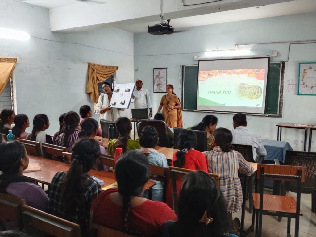 शासकीय नवीन महाविद्यालय रिसाली में प्राचार्य डॉ. अनुपमा अस्थाना की अध्यक्षता एवं डॉ. ममता , सहायक प्राध्यापक वनस्पति शास्त्र एवं डॉ.पूजा पाण्डेय, सहायक प्राध्यापक हिंदी के संयुक्त तत्वावधान में दिनांक 20.08.2025 को मिलेट कैफे कोर्ट पर कार्यशाला का आयोजन किया गया । डॉ. ममता ने पी.पी.टी. के माध्यम से मिलेट से तात्पर्य , प्रकार, विशेषता और मिलेट के सेवन से होने वाले शारीरिक लाभ पर विस्तार से चर्चा की । डॉ. पूजा पाण्डेय ने विविध प्रकार के मिलेट सैंपल छात्र – छात्राओं को दिखाया साथ ही उनसे बनने वाले खाद्य पदार्थों के विषय में जानकारी दी।