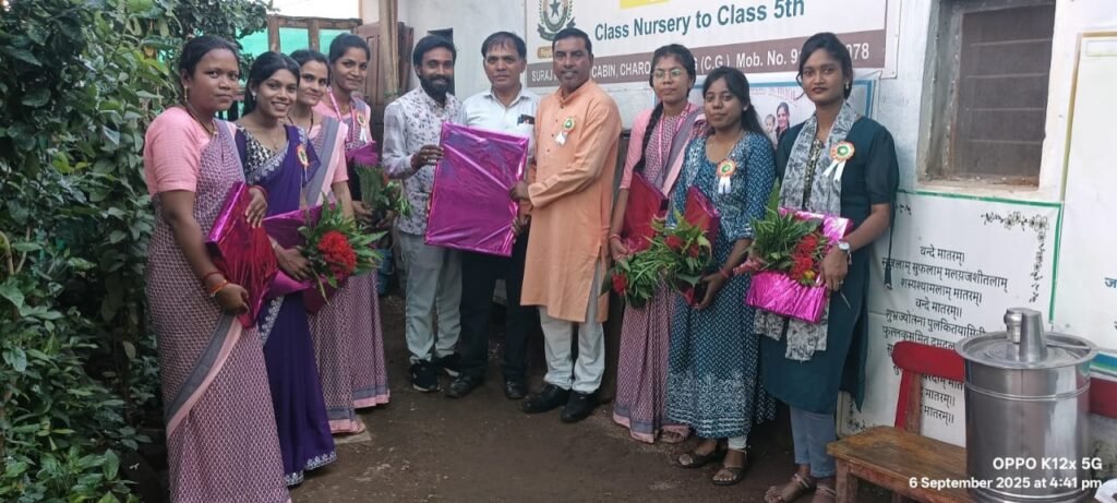 भिलाई। दिनांक 06 सितंबर 2025 को संत कबीर पब्लिक स्कूल जी.केबिन चरोदा में शिक्षक दिवस बड़े हर्षोल्लास के साथ मनाया गया। कार्यक्रम के मुख्य अतिथि सूरज साहू, संयोजक रेड ड्रॉप फ्रेंड्स क्लब छत्तीसगढ़ रहे। विशेष अतिथि के रूप में रामकुमार साहू, सह सचिव जिला साहू संघ भिलाई नगर उपस्थित रहे। अन्य अतिथियों में महिमा नेताम, भावना पटेल एवं याशिका कश्यप सम्मिलित हुईं।