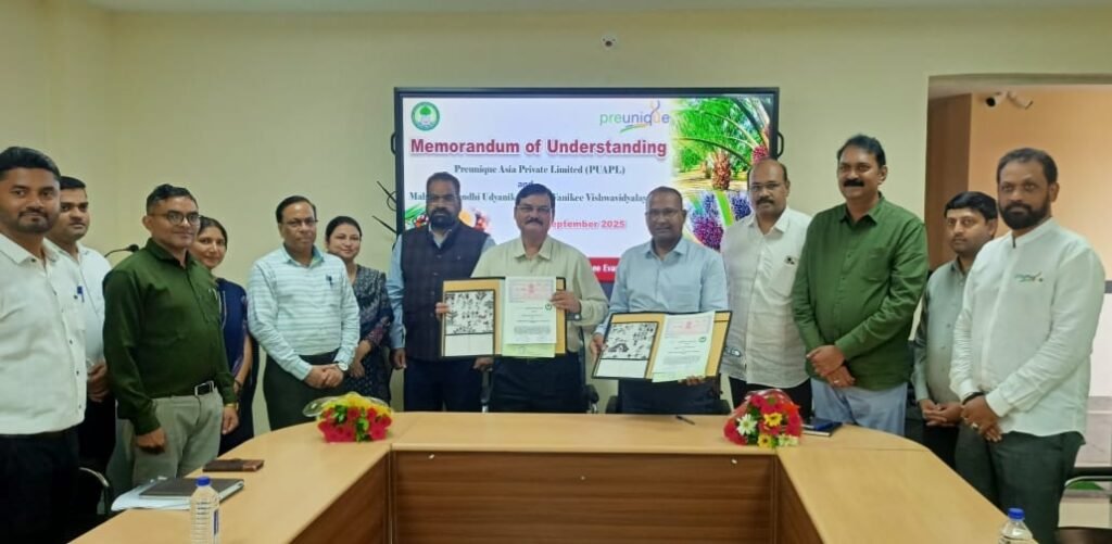 महात्मा गांधी उद्यानिकी विश्वविद्यालय और प्री यूनिक एशिया ने ऑयल पाम पर किया ऐतिहासिक एमओयू
