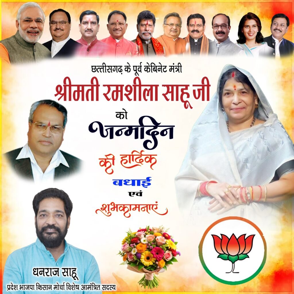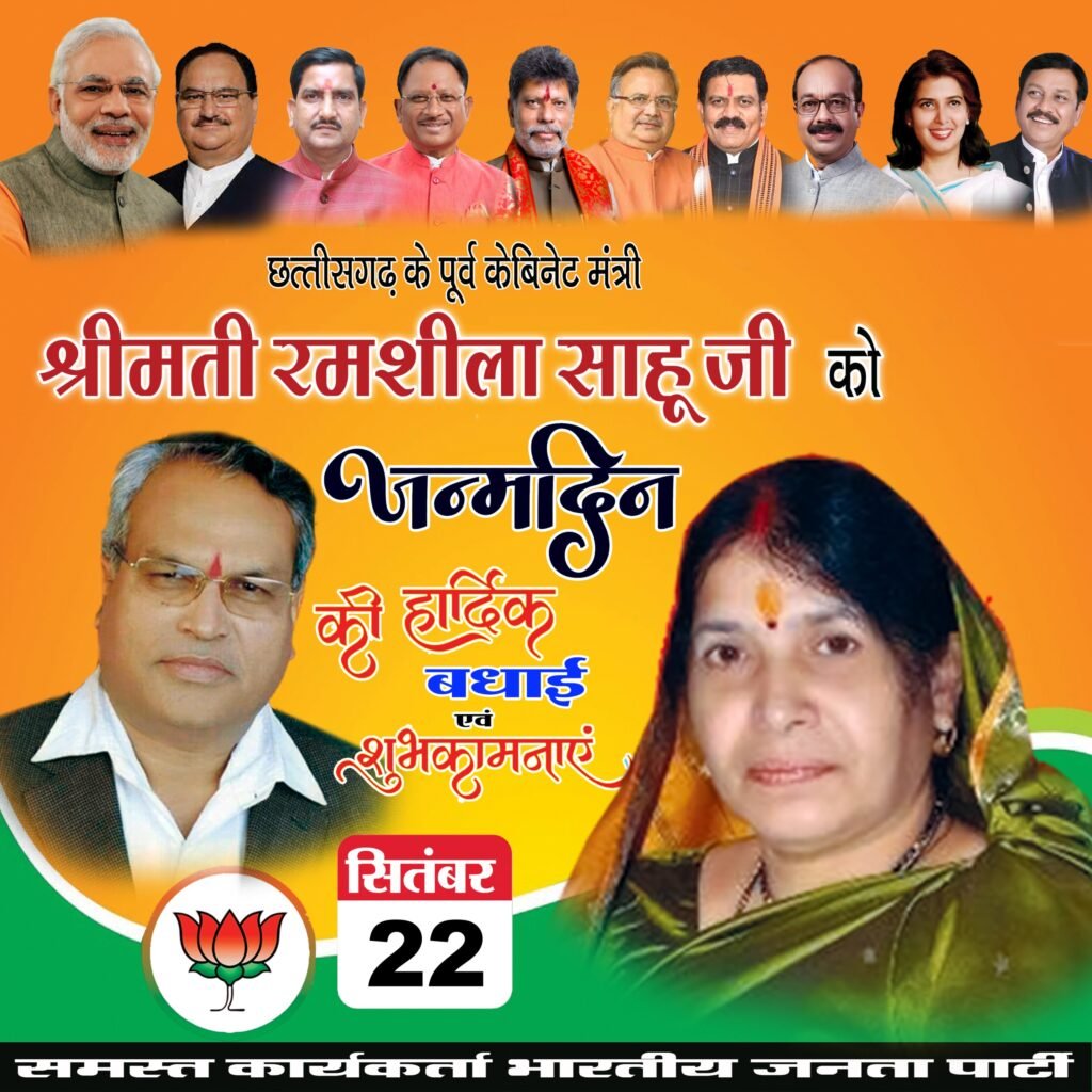 इसी अवसर पर आज पूर्व मंत्री श्रीमती रमशीला साहू का जन्मदिन भी मनाया जाएगा। इस दौरान वे स्थानीय कार्यकर्ताओं से भेंट-मुलाकात करेंगी और संगठनात्मक गतिविधियों पर चर्चा करेंगी।