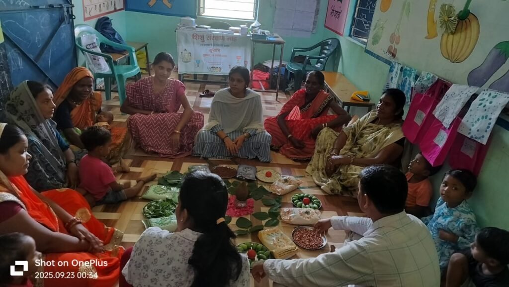 राष्ट्रीय पोषण माह 2025 महिला बाल विकास परियोजना पाटन, सेक्टर रानीतराई के अंतर्गत कुपोषण मुक्त हेतु चयनित ग्राम पंचायत पहंदा झा के आंगनबाड़ी में सुपोषण चौपाल के माध्यम से मोटापे से जुड़ी महत्वपूर्ण जानकारी दी गई ।मोटापे का अर्थ और कारण-अति पोषण का एक रूप -मोटापा पोषक तत्वों की अधिकता या असंतुलन के कारण होता है जिससे शरीर में अतिरिक्त वसा जमा हो जाती है।स्वस्थ भोजन की आदतें: घर में ताजे और पौष्टिक भोजन जैसे फल ,सब्जियां ,अनाज और मेवे का सेवन करने के लिए प्रोत्साहित किया गया ।सक्रिय जीवन शैली: पैदल चलना, साइकिल चलाना ,योग ,प्राणायाम और खेलकूद जैसी शारीरिक गतिविधियों को अपने के लिए प्रेरित किया गया ।मोटापे की रोकथाम: जंक फूड ,तला हुआ , हाई कैलोरी , हाई शुगर, हाई सोडियम और पैकेट बंद खाद्य पदार्थ और मीठे के पदार्थ का सेवन मोटापे किए प्रमुख कारण है । शारीरिक गतिविधियों की कमी और गतिहीन जीवन शैली भी मोटापे को बढ़ावा देती है।
