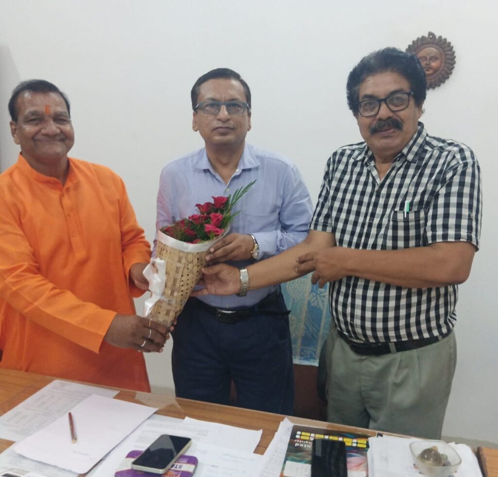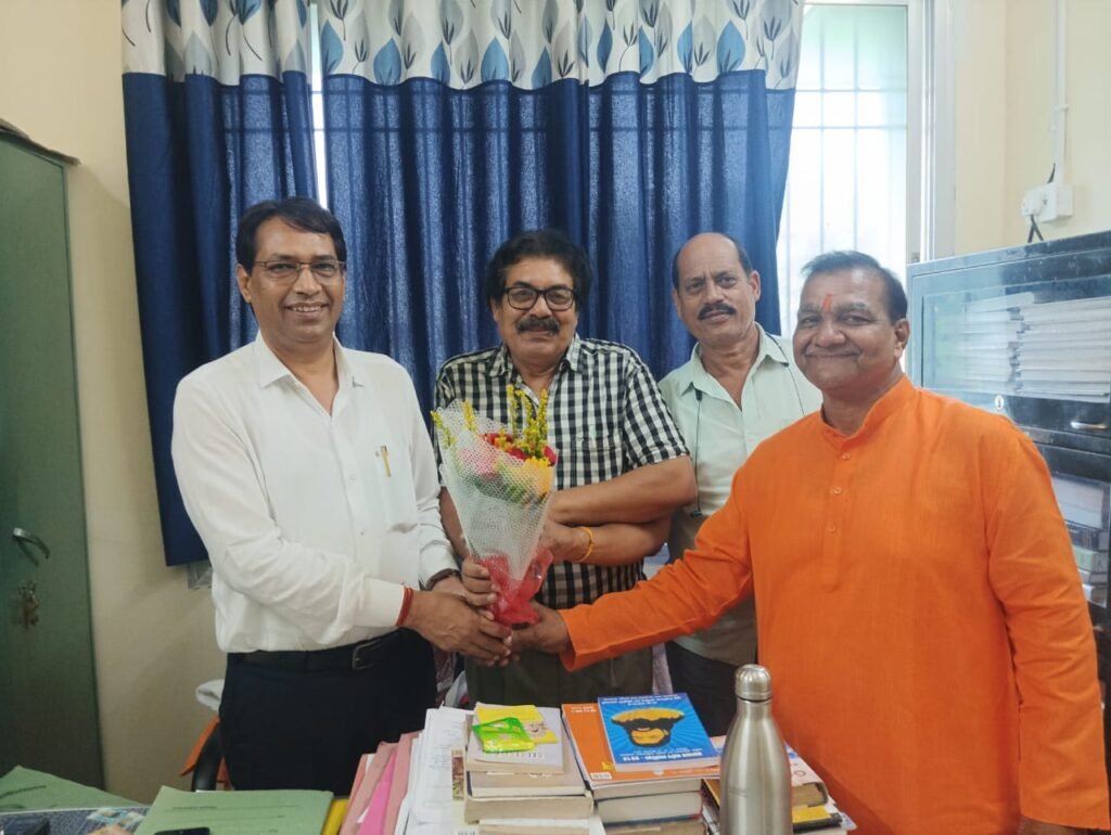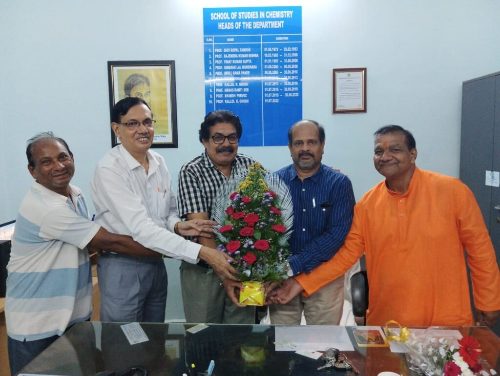 रायपुर,, पंडित रविशंकर शुक्ल वि वि के सेवानिवृत कर्मचारियों ने नव नियुक्त नौ विभागाध्यक्ष के विभागों में जाकर शुभकामनाएं दी “छतीसगढ़ विश्वविद्यालयीय पेंशनर्सकल्याण समिति के अध्यक्ष प्रदीपकुमार मिश्र और सचिव शिरिष त्रिवेदीने बताया कि पंडित रविशंकर शुक्ल वि वि के सेवानिवृत कर्मचारियों ने नव नियुक्त नौ विभागाध्यक्ष के विभागों में जाकर शुभकामनाएं दी