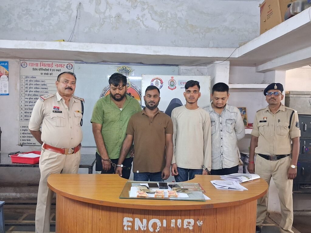 दुर्ग। पुलिस द्वारा जिले में सट्टा जुआ एवं अन्य अवैध धंधों मे संलिप्त आरोपीगण के विरूद्ध लगातार चलाए जा रहे अभियान के क्रम में भिलाईनगर थाना क्षेत्र में आनलाईन सट्टेबाजी में लिप्त गिरोह का भंडाफोड़ किया जाकर सट्टेबाजी में लिप्त 04 आरोपियों को गिरफ्तार करने में सफलता प्राप्त हुई है।