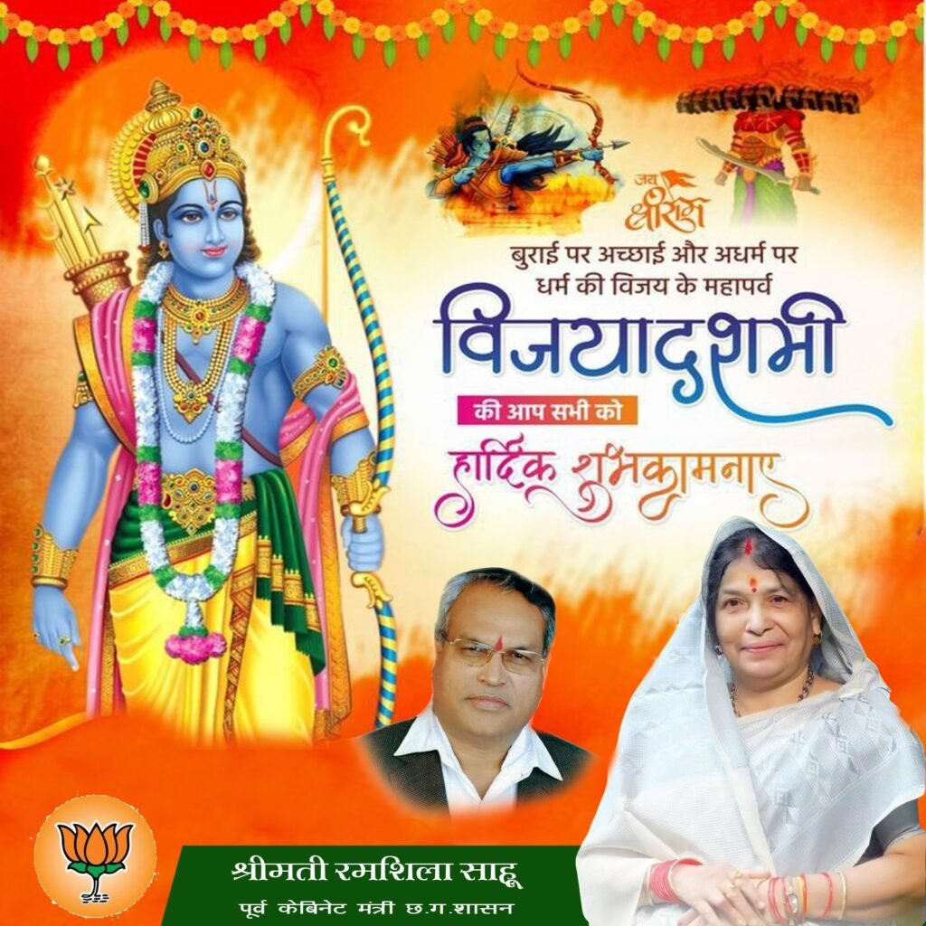 श्रीमती साहू ने संदेश में कहा कि माता दुर्गा की कृपा से सभी के जीवन में सुख, शांति और समृद्धि आए। विजयादशमी का यह पर्व हम सबको सच्चाई, धर्म और परोपकार के मार्ग पर चलने की प्रेरणा देता है।