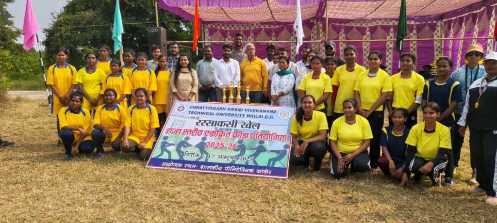 भिलाई। छत्तीसगढ़ स्वामी विवेकानंद तकनीकी विश्वविद्यालय (सीएसवीटीयू), भिलाई के तत्वावधान में एकदिवसीय राज्यस्तरीय रस्साकस्सी (टग ऑफ वार) प्रतियोगिता का सफल आयोजन शासकीय पॉलिटेक्निक महाविद्यालय, कांकेर में किया गया। यह आयोजन विश्वविद्यालय की एकीकृत राज्यस्तरीय खेल प्रतियोगिता के अंतर्गत हुआ, जिसमें राज्य के विभिन्न तकनीकी व फार्मेसी महाविद्यालयों की महिला एवं पुरुष टीमों ने उत्साहपूर्वक भाग लिया।