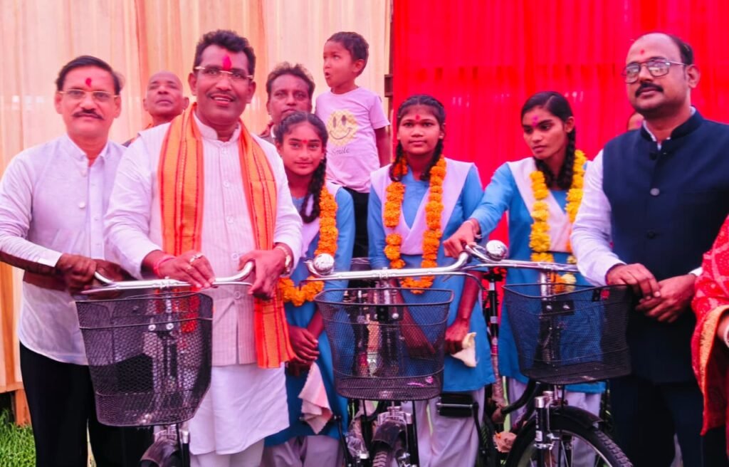 राजिम/ कोपरा हायर सेकंडरी स्कूल में सरस्वती सायकल योजना के अंतर्गत सायकल वितरण व आनंद मेला का आयोजन स्कूल प्रबंधन द्वारा किया गया। इस कार्यक्रम में मुख्य अतिथि विधायक रोहित साहू ने 32 छात्राओं को साइकिल वितरण कर छात्राओं को प्रतिदिन स्कूल आने व अच्छे पढ़ाई कर अपने माता-पिता के साथ क्षेत्र का नाम रोशन करने की कामना किया। इस दौरान उन्होंने कहा कि आज सायकल वितरण के साथ स्कूल में पहली बार आनंद मेला का आयोजन किया गया है। जो काफी सराहनीय हैं। पूर्व की रमन सिंह की सरकार द्वारा बेटी बचाओ बेटी पढ़ाओ के तहत भाजपा सरकार द्वारा सरस्वती सायकिल योजना संचालित कर गरीब छात्राओं को साइकल वितरण प्रारंभ किया गया।
