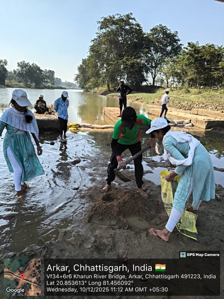 पाटन।मदनलाल साहू शासकीय महाविद्यालय अरमरीकला की राष्ट्रीय सेवा योजना इकाई द्वारा संचालित सात दिवसीय विशेष शिविर के तृतीय दिवस की शुरुआत सुबह 5 बजे जागरण एवं प्रभात फेरी के साथ हुई। इसके पश्चात सभी स्वयंसेवकों ने “जल ही जीवन है” संदेश को सार्थक करते हुए खारुन नदी (आगेसरा अरकार) ओवरब्रिज के नीचे बोरी में रेत भरकर स्टॉप डेम निर्माण का कार्य किया। बच्चों ने निःस्वार्थ भाव से सेवा देते हुए नदी में सेतु बांधने का कार्य संपन्न किया।