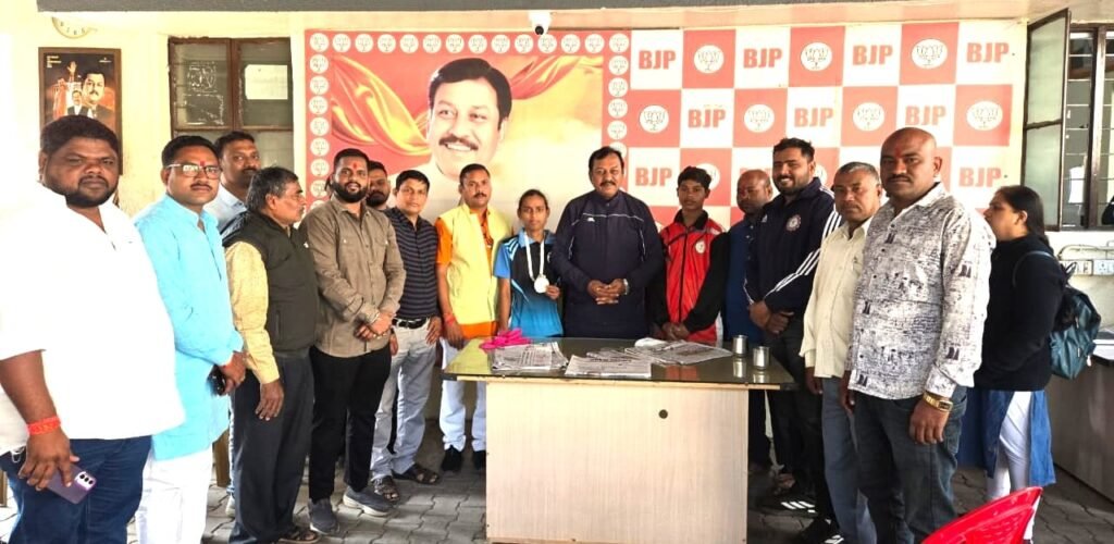 पाटन। दुर्ग लोकसभा सांसद एवं छत्तीसगढ़ प्रदेश वेटलिफ्टिंग संघ के अध्यक्ष विजय बघेल द्वारा अस्मिता खेलो इंडिया वेस्ट ज़ोन वूमेन्स लीग 2025–26 (राजस्थान) में रजत पदक प्राप्त करने वाली होनहार खिलाड़ी रेशम साहू तथा स्कूल नेशनल गेम्स में छत्तीसगढ़ का प्रतिनिधित्व करने वाले खिलाड़ी षष्ठधीश कौशिक एवं उनके कोच आदित्य सिन्हा का सम्मान किया गया।
