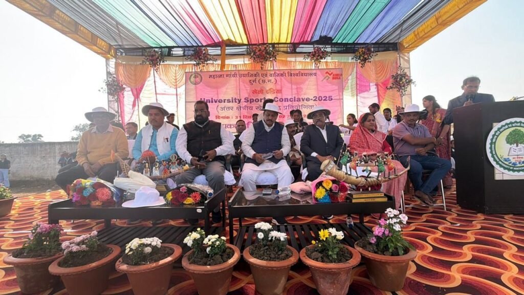 पाटन। महात्मा गांधी उद्यानिकी एवं वानिकी विश्वविद्यालय, सांकरा (पाटन) में विश्वविद्यालय खेल सम्मेलन 2025–26 का भव्य शुभारंभ हर्षोल्लास के साथ किया गया। यह खेल सम्मेलन 31 दिसंबर से प्रारंभ होकर 02 जनवरी 2026 तक आयोजित किया जाएगा।