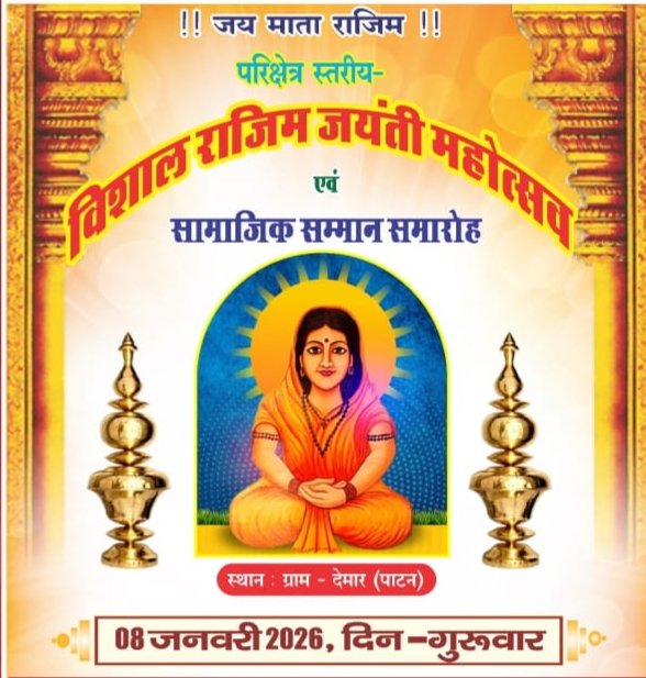 समारोह के प्रथम सत्र राजिम जयंती के मुख्य अतिथि सांसद विजय बघेल, प्रमुख अतिथि तेलघानी बोर्ड अध्यक्ष जितेंद्र साहू, अति विशिष्ट अतिथि पूर्व सांसद चुन्नी लाल साहू, अध्यक्षता पूर्व तहसील अध्यक्ष दिनेश साहू, विशेष अतिथि दिव्या कलीहारी होंगे।