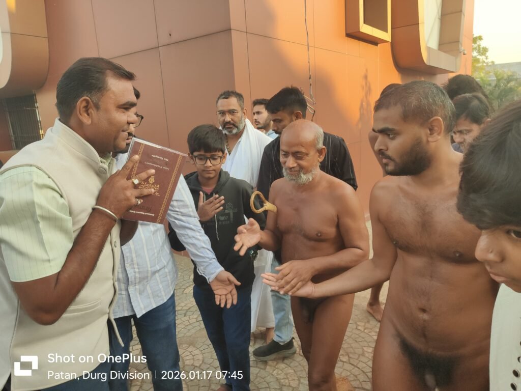 पाटन। दिगंबर जैन परंपरा के प्रतिष्ठित संत परम पूज्य पट्टाचार्य श्री विशुद्ध सागर जी महाराज ससंघ का पाटन नगर में मंगल प्रवेश श्रद्धा और भक्ति के वातावरण में संपन्न हुआ। इस अवसर पर मनवा कुर्मी समाज पाटन के राज प्रधान युगल आडिल ने पट्टाचार्य श्री के चरणों में उपस्थित होकर जनकल्याण, सामाजिक सद्भाव एवं क्षेत्र की सुख-समृद्धि के लिए आशीर्वाद प्राप्त किया।