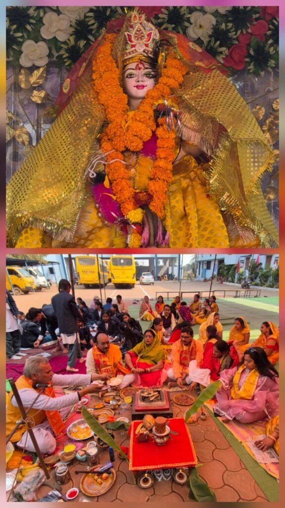 प्रतिवर्षानुसार दीपशिखा उच्चतर माध्यमिक विद्यालय डुमरडीह,उतई में बसंत पंचमी हर्षोल्लास के साथ मनाया गया। इस अवसर पर पं. संतोष मिश्रा द्वारा विधिविधान एवं मंत्रोच्चार के साथ सरस्वती मंदिर में पूजा अर्चना किया गया। विद्यालय के डायरेक्टर डी एल सिन्हा एवं प्राचार्य के आर सिन्हा सपत्नीक मुख्य यजमान के रूप में उपस्थित होकर विद्यालय परिवार की सुख, शांति ,समृद्धि एवं सद्बुद्धि प्राप्त करने की भावनाओं से समस्त शिक्षक -शिक्षिकाओं एवं विद्यार्थियों के साथ पूजा अर्चना की। विद्यालय की छात्र -छात्राओं ने माँ सरस्वती से सदबुद्धि ,सन्मार्ग एवं सत्कार्य प्रदान करने हेतु बहुत ही उत्सुकतापूर्वक पूजा अर्चना की। तत्पश्चात भोजन प्रसादी का भी आनंद लिए। इस अवसर पर दुर्ग प्राइवेट स्कूल एसोसिएशन के कोषाध्यक्ष श्री दयाराम साहू ,सरस्वती शिशु मंदिर के शिक्षक भोजराम साहू तथा बी एस पी हायर सेकेंडरी स्कूल सेक्टर 02 भिलाई के व्याख्याता डी के साहू उपस्थित रहे।