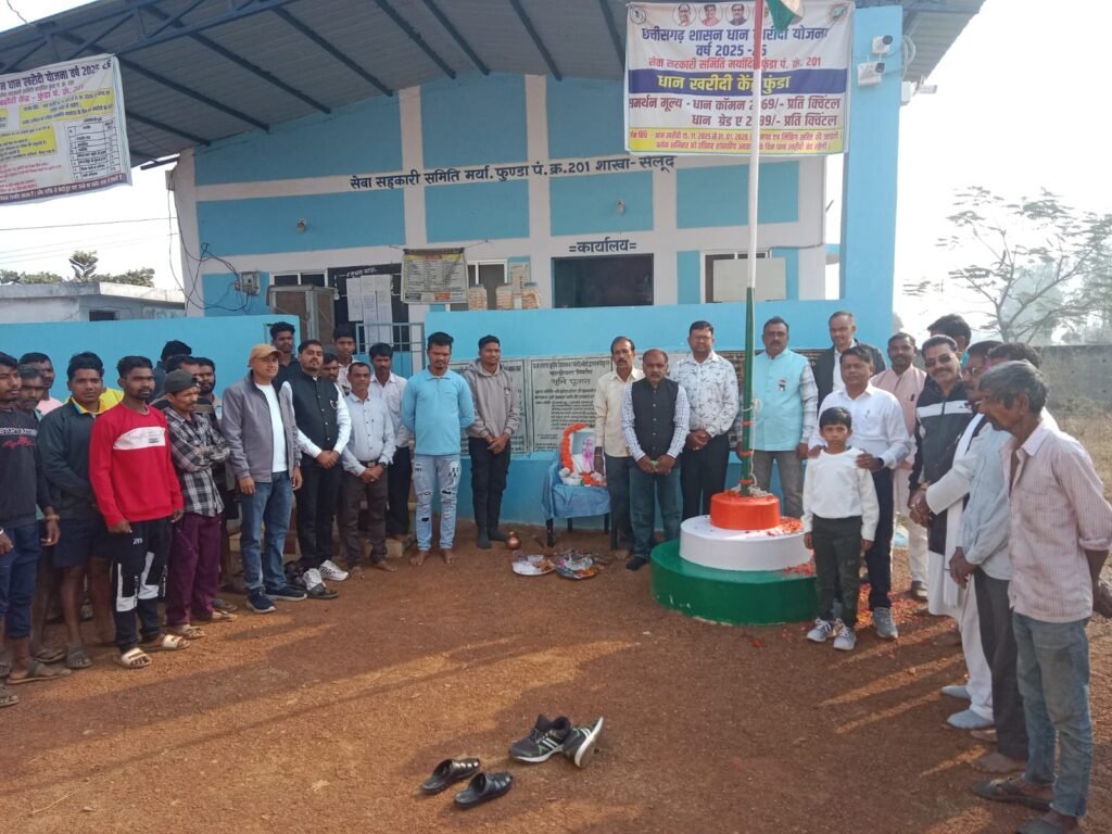 पाटन। 77वें गणतंत्र दिवस के पावन अवसर पर सेवा सहकारी समिति फूंडा में प्राधिकृत अध्यक्ष नीलेश्वर वर्मा द्वारा समिति प्रांगण में विधिवत ध्वजारोहण किया गया। ध्वजारोहण के पश्चात राष्ट्रगान का सामूहिक गायन किया गया।