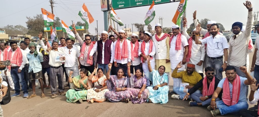 हाथों में बैनर-तख्तियां लेकर किसानों के समर्थन में जोरदार नारेबाजी की गई।सड़क के दोनों ओर बैठकर सांकेतिक चक्काजाम किया गया और धान खरीदी की तिथि बढ़ाने तथा मनरेगा को पुनः पूर्ण रूप से लागू करने की मांग उठाई गई। कार्यकर्ताओं ने भाजपा सरकार पर जानबूझकर किसानों को नुकसान पहुंचाने का आरोप लगाया।