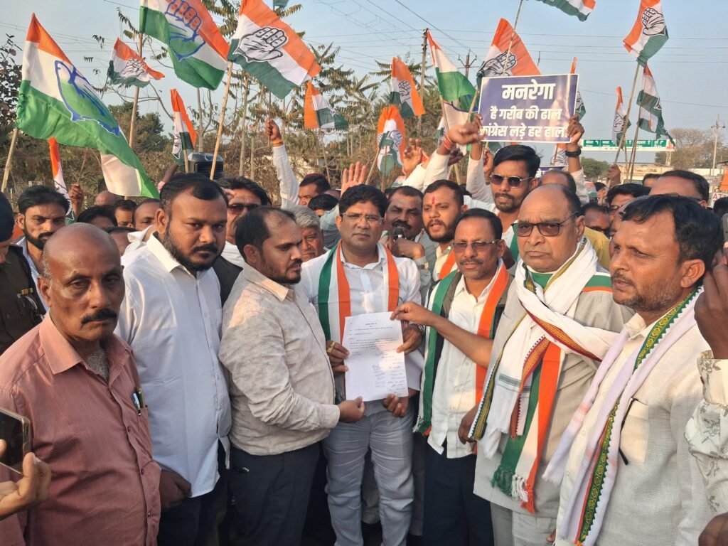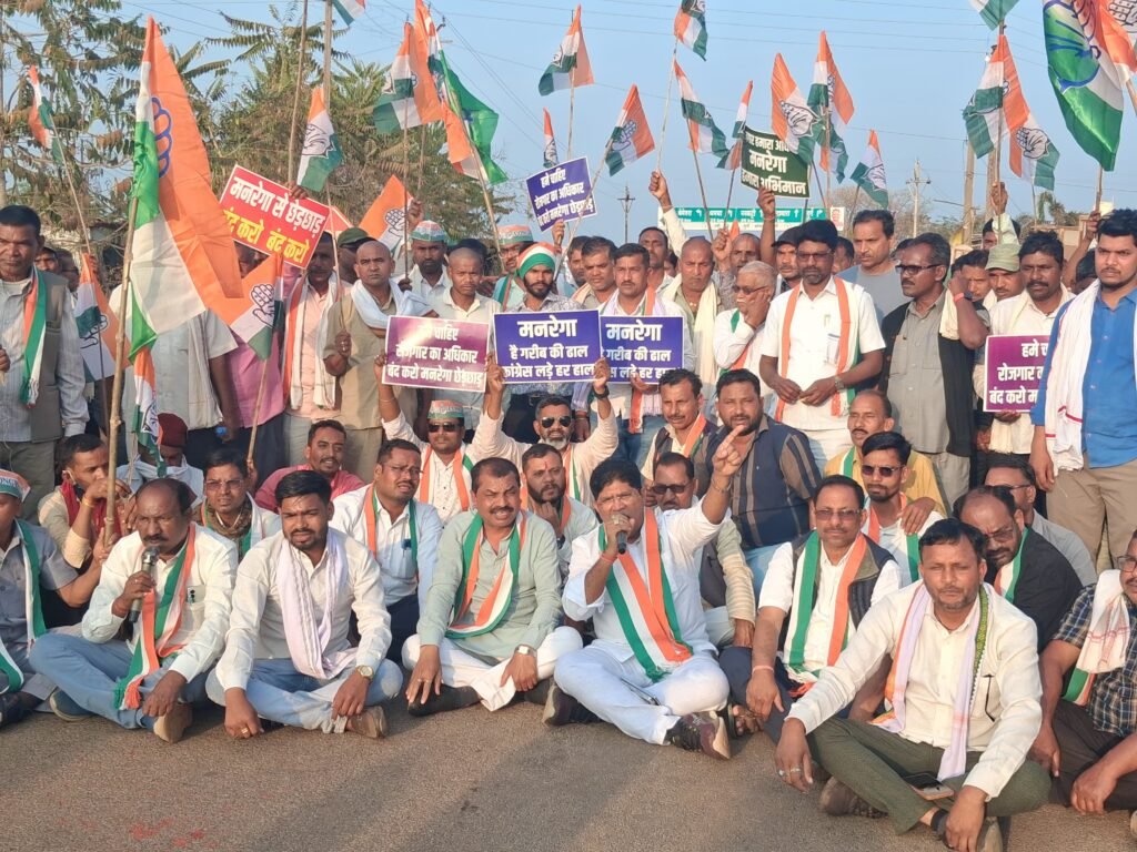 कांग्रेसियों ने किसानों व मनरेगा श्रमिको के साथ किसानों की धान खरीदी की समय-सीमा तत्काल बढ़ाने, मनरेगा कानून को बंद करने और रोजगार से वंचित रसखने की साजिश के खिलाफ संघर्ष तथा भाजपा सरकार की किसान-विरोधी एवं श्रमिक-विरोधी नीतियों के खिलाफ जनआक्रोश प्रकट किया।