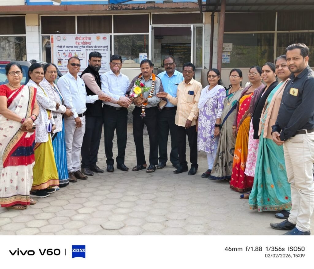 खंड चिकित्सा अधिकारी डॉ भुवनेश्वर कठौतिया ने छत्तीसगढ़ प्रदेश स्वास्थ्य कर्मचारी संघ के बैनर पर उनका शाल श्रीफल पुष्पमाला पहनाकर स्वागत किया कार्यक्रम में के के वर्मा ने कहा कि भले ही वे हमारे विभाग के कर्मचारी नहीं थे लेकिन सभी विभागों के अधिकारी कर्मचारियों से उनका व्यवहार सदाचार और अनुकूलन योग्य सरल और सहज था