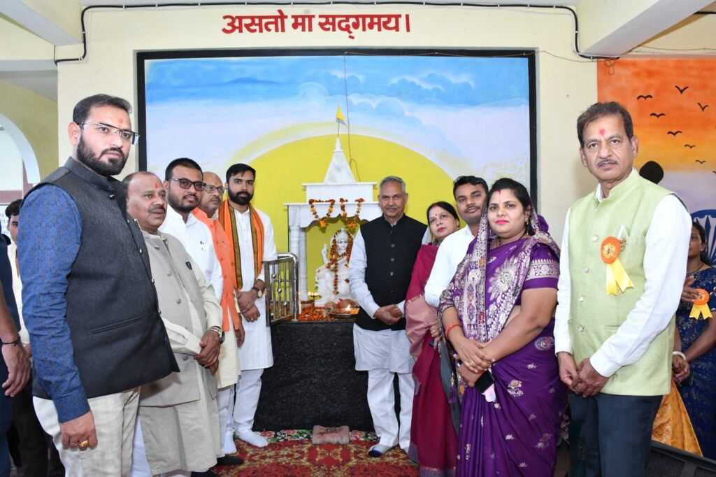 मुख्य अतिथि द्वारा अपने उद्बोधन में गुरुकुल की परंपरा के विषय में प्रकाश डाला और बताया कि हमें पुरानी पद्धतियों के अनुसार बच्चों को शिष्टाचार सिखाना अति आवश्यक है आधुनिक एवं प्राचीन परंपरा को जोड़ते हुए बच्चों को बच्चों को नैतिक शिक्षा दी जाए साथ ही साथ जितेंद्र वर्मा ने पीएम श्री के विषय में सारगर्भित बातें बताएं की पीएम श्री विद्यालय का उद्देश्य बच्चों को सुविधा युक्त शिक्षा और संगीत योग गतिविधि अग्रणी करना है।