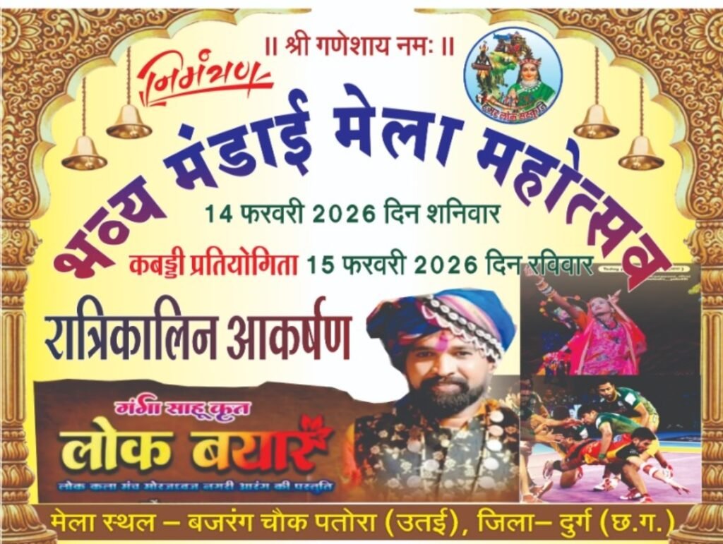 पतोरा में मंडई मेला आज, लोक बयार आरंग की रंगारंग प्रस्तुति; 15 फरवरी को कबड्डी प्रतियोगिता