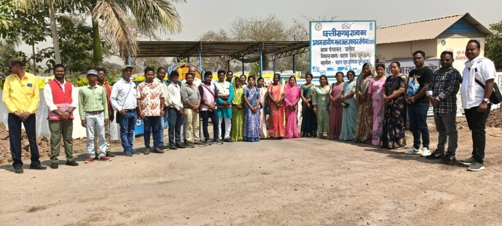 पाटन। छत्तीसगढ़ राज्य का प्रथम ग्रामीण मलजल उपचार संयंत्र (FSTP) पाटन विधानसभा क्षेत्र के आदर्श ग्राम पतोरा, विकासखंड पाटन, जिला दुर्ग में स्थापित है। इस संयंत्र की कार्यप्रणाली का अध्ययन एवं अवलोकन करने हेतु मंगलवार 10 मार्च 2026 को मुख्यमंत्री के गृह जिला जशपुर के विभिन्न विकासखंडों से ग्राम पंचायतों के सरपंचों का 40 सदस्यीय दल ग्राम पतोरा पहुंचा।