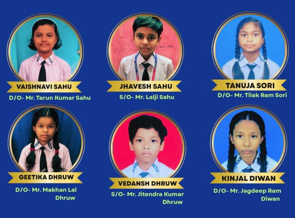 सत्र 2026-27 के लिए जिन्होंने अपनी ख्याति से पूरे स्कूल का नाम रोशन किया है उनमें तनुजा सोरी पिता तिलक राम सोरी, वैष्णवी साहू पिता तरुण कुमार साहू, वेदांश ध्रुव पिता जितेंद्र कुमार ध्रुव, झावेश साहू पिता लालजी साहू, किंजल दिवान पिता जगदीप राम दिवान, गीतिका ध्रुव पिता माखन लाल ध्रुव है।