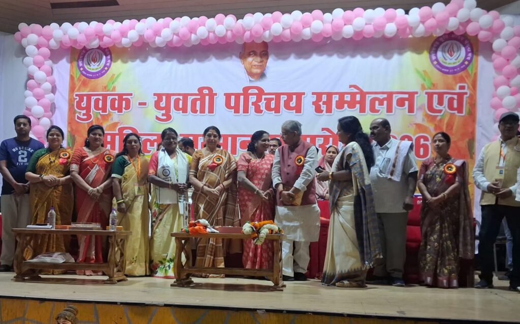कार्यक्रम के दौरान समाज की उत्कृष्ट एवं प्रेरणादायी महिलाओं का सम्मान किया गया। युवक-युवती परिचय सम्मेलन में बड़ी संख्या में परिवारों की सहभागिता ने सामाजिक एकता और समावेश की भावना को और सुदृढ़ किया। पूरे आयोजन का वातावरण उत्साह, सम्मान और सामाजिक समरसता से ओत-प्रोत रहा।