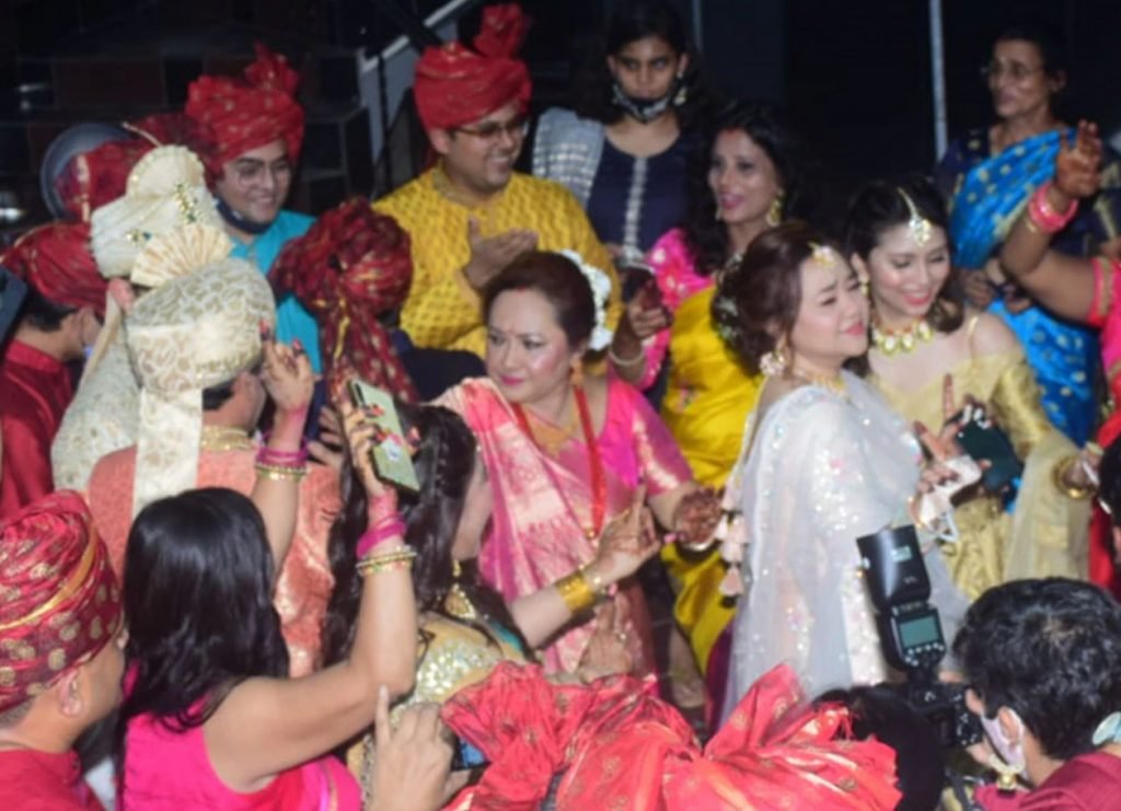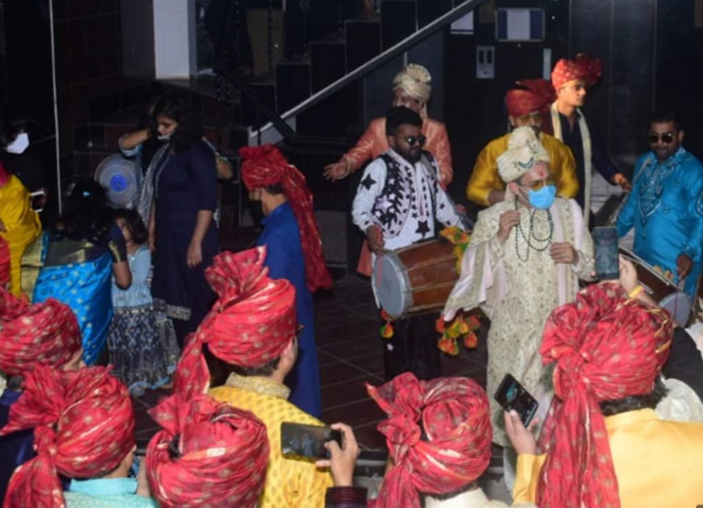 कुछ तस्वीरों में आदित्य मास्क पहने भी नजर आए. जैसे ही ढोल-नगाड़ों की धुन पर नाचने लगे उन्होंने अपना मास्क उतारकर हाथ में रख लिया. आदित्य के अलावा कुछ अन्य बाराती भी मास्क पहने दिखे. आदित्य के पिता सिंगर उदित नारायण की चेहरे की खुशी भी साफ झलक रही थी. उन्होंने भी अपने बेटे के साथ जमकर कदम से कदम मिलाकर डांस किया. लाइट ऑरेंज कलर की शेरवानी में उदित नारायण भी कमाल के लग रहे थे. उनके चेहरे पर बेटे की शादी की खुशी उनकी मुस्कान और चेहरे की रौनक बता रही थी. आदित्य की मां दीपा नारायण भी बारात में शामिल थीं. पिंक साड़ी और लाइट जूलरी में दीपा शानदार लग रही थीं. कुछ फोटोज में उन्हें भी बेटे और पति के साथ डांस करते देखा जा सकता है.