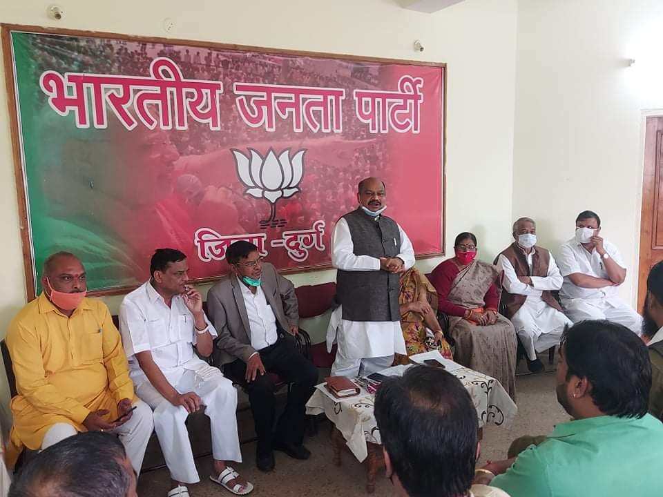 दुर्ग। भारतीय जनता पार्टी के प्रदेश अध्यक्ष विष्णु देव साय राज्य सरकार के वादा खिलाफी धान खरीदी की अव्यवस्था, बारदाना की कमी , रकबा कटौती को लेकर 13 जनवरी को विधानसभा स्तरीय एवं 22 जनवरी को जिला स्तरीय प्रदर्शन करने का निर्णय लिया गया। जिसके सम्बंध में आज जिला भाजपा कार्यालय दुर्ग में भारतीय जनता पार्टी दुर्ग जिला संगठन प्रभारी पुरंदर मिश्रा का आज दुर्ग जिला भाजपा कार्यालय आगमन हुआ। दुर्ग पर उनका स्वागत किया गया और आवश्यक बैठक लिया गया । बैठक की शुरुआत भारत माता, पंडित दीनदयाल उपाध्याय और डॉ. श्याम प्रसाद मुखर्जी के तैल चित्र पर दीप प्रज्वलित और माल्यार्पण कर किया गया।