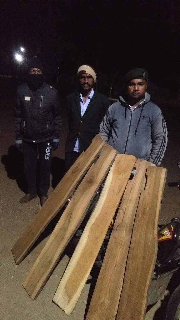 सागौन तस्कर पर नकेल कसने वन विभाग का गस्त लगातार जारी है आपको बताते चलें की गरियाबंद जिले के वनमण्डलाधिकारी मयंक अग्रवाल जी के निर्देशानुसार इंदागांव देवभोग रेंज में पदस्थ वन परीक्षेत्र अधिकारी नागराज मंडावी के कुशल नेतृत्व में सहायक वन परीक्षेत्र अधिकारी देवभोग दिनेश चंद्र पात्र द्वारा टीम गठित कर धूप कोट बीट के अंतर्गत पीठापारा उड़ीसा सीमा अति संवेदनशील क्षेत्र का रात्रि गश्त किया गया रात्रि गश्त के दौरान बाइक सवार तस्कर 5 नग सागौन चिरान लेकर छत्तीसगढ़ से उड़ीसा की और अवैध रूप से परिवहन कर रहा था एवं दूर से वन कर्मियों को देखकर वनोपज को नीचे फेंक कर अंधेरे का फायदा उठाकर फरार हो गया