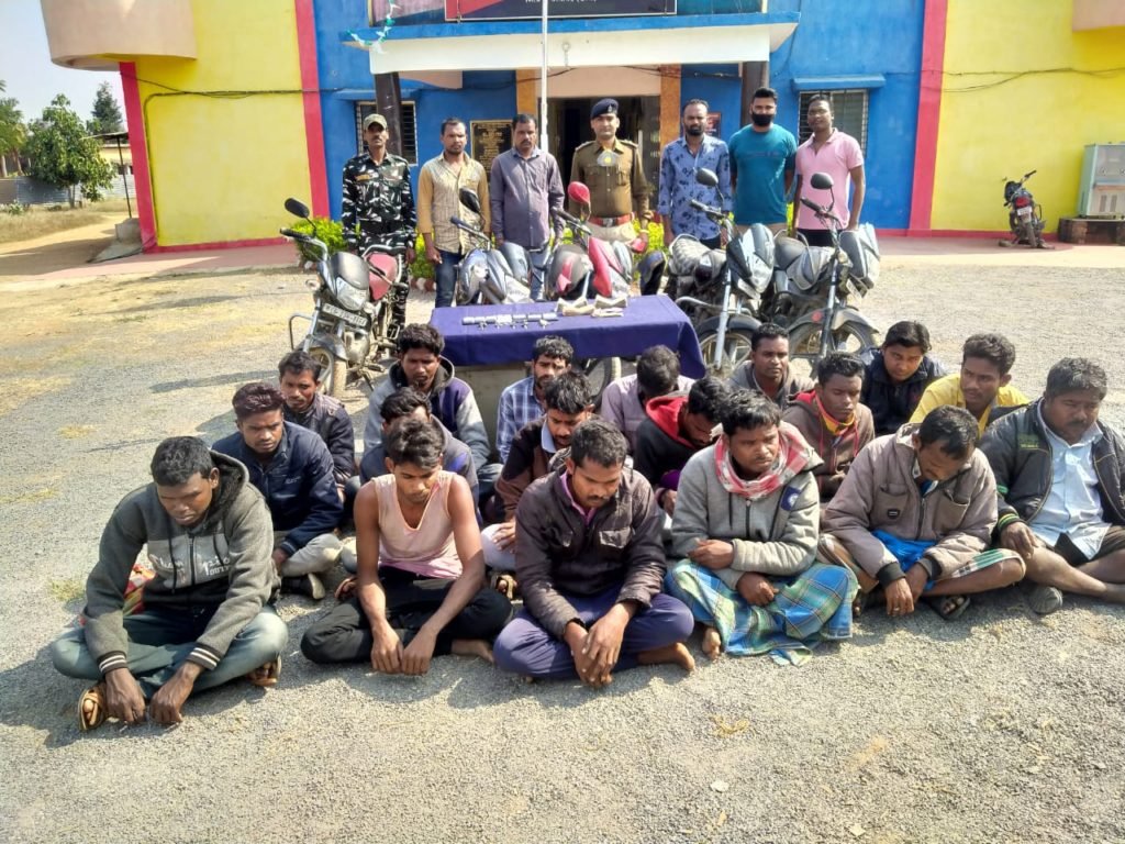 दरअसल पुलिस को मुखबिर से इस बात की सूचना मिली थी कि अमलीपदर थाना क्षेत्र के मुड़ामहान गांव में कुछ दिनों से जुएं का बड़ा फड़ संचालित हो रहा है. जिसमे आसपास के लोग रात भर जुआ खेलते हैं, सूचना मिलते ही पुलिस एक्शन में आई और तत्काल ही मौके पर पंहुचकर कुल 18 आरोपियों को जुआ खेलते गिरफ्तार किया है। अमलीपदर थाना प्रभारी नवीन राजपूत ने बताया कल देर रात मुखबिर से इस बात की सूचना मिली थी, जिस पर कार्यवाही की गई है। वहीं मौके पर से 18 आरोपियों के साथ पांच मोटरसाइकिल और 7 मोबाइल फोन भी जब्त की गई है थाना प्रभारी राजपूत ने बताया कि आगे भी ऐसे मामलों पर लगातार कार्यवाही जारी रहेगी और सूचना मिलते ही तुरंत कार्यवाही की जाएगी पुलिस को इस बड़ी कार्यवाही में सफलता मिली है ।