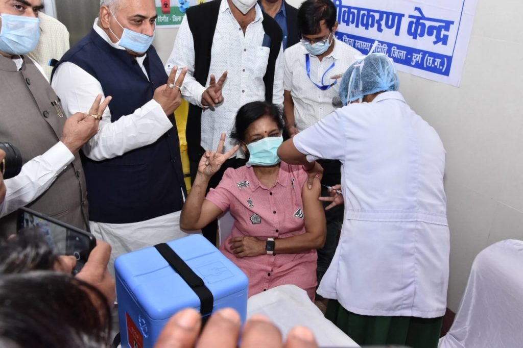 दुर्ग। ग्यारह बजे जैसे ही प्रधानमंत्री नरेंद्र मोदी का संबोधन समाप्त हुआ और वैदिक मंत्र सर्वे भवन्तु सुखिनः, सर्वे सन्तु निरामया के साथ ही वैक्सीनेशन के लिए डॉ. सुगम सावंत को ले जाया गया। यह बहुत भावुक माहौल था। हेल्थ स्टाफ और डॉ. सुगम सावंत भी बड़ी भावुक थीं। इन्होंने लगभग दस महीनों से कोरोना का दंश लगातार झेला था और अब वैक्सीन के रूप में आशा की किरण आ गई थी। पहला टीका जब लगा तो डॉ. सावंत, विधायक अरुण वोरा, महापौर धीरज बाकलीवाल, सीएमएचओ डॉ. गंभीर सिंह ठाकुर सहित सभी अधिकारियों एवं जनप्रतिनिधियों ने विक्ट्री साइन दिखाया। ये उमंग का क्षण था। इसके बाद आधे घंटे के लिए डॉ. सावंत को आब्जर्वेशन में रखा गया। सब कुछ सही तरह से हुआ। किसी तरह का साइड इफेक्ट नहीं देखा गया। डॉ. सुगम के तुरंत बाद डॉ. केडी तिवारी को टीका लगाया गया। इस दौरान वैक्सीन के प्रोटोकाल के पूरे प्रोसीजर का पालन किया गया। किसी भी तरह की स्थिति से निपटने के लिए जिला अस्पताल में पूरी तैयारियाँ रखी गई थीं। जिला अस्पताल के साथ ही चार अन्य केंद्रों में भी टीकाकरण आरंभ हुआ। शंकराचार्य हास्पिटल जुनवानी, पाटन स्वास्थ्य केंद्र, नगपुरा स्वास्थ्य केंद्र और बैकुंठपुर में भी टीकाकरण हुआ। इस मौके पर सिविल सर्जन डॉ. पी. बालकिशोर, आरएमओ डॉ.. अखिलेश यादव जीवनदीप समिति के सदस्य दिलीप ठाकुर, पुरुषोत्तम कश्यप, भूषण देवांगन भी उपस्थित थे।