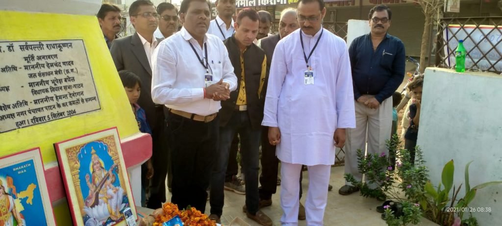 पाटन—26 जनवरी गणतंत्र दिवस के शुभ अवसर पर कायाकल्प ग्रामीण लोक कल्याण समिति के द्वारा पूर्व राष्ट्रपति सर्वपल्ली राधा कृष्ण की मूर्ति में माल्यार्पण कर समिति के अध्यक्ष व्ही .एन. वर्मा के द्वारा ध्वजारोहण किया गया,, ध्वजारोहण के कार्यक्रम में उपस्थित महिला समूह ,किसान समूह, नवयुवक मंडल एवं समिति के सक्रिय सदस्य को संक्षिप्त संबोधित करते हुए समिति के अध्यक्ष व्ही. एन.वर्मा ने समिति के उद्देश्य पर प्रकाश डालते हुए कहा कि समिति लोक कल्याणकारी कार्य को करते हुए सभी के सहयोग की अपेक्षा करते हुए कायाकल्प संस्था को छत्तीसगढ़ में एक अलग पहचान दिलाने एवं जन कल्याणकारी योजना को निरंतर आगे बढ़ाते रहने की बात कही,,इस समय सभी सदस्यों ने समिति के माध्यम से समाज के लिये कार्य करने का संकल्प लिया,,,