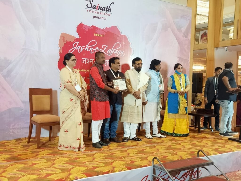 गत दिनों राजधानी रायपुर साईंनाथ फाउंडेशन के तत्वाधान में आयोजित तीन दिवसीय जश्ने ए जबां महोत्सव में रत्नान्चल साहित्य परिषद अमलीपदर- देवभोग के कवि विनोद गोयल “अश्क़ बस्तरी”एवं युवाकलमकार भुवेंद्र बघेल को सम्मानित किया गया।ज्ञात हो कि कार्यक्रम के मुख्यअतिथि पद्मश्री पंडवानी लोकगायिका तीजन बाई,युवा आयोग छत्तीसगढ़ के पूर्व अध्यक्ष् कमलचंद भंजदेव,वरिष्ठ शायर शाद बिलासपुरी,एवं कवित्री उर्मिला देवी”उर्मि”के उपस्थिति में सम्मान पत्र प्रदान किया गया।उल्लेखनीय है कि युवाकलमकार कि खोज 2020 के अंतर्गत पुरे प्रदेश में जश्न ए जबां महोत्सव का आयोजन किया गया था।जिसमे प्रदेशभर के कवि-साहित्यकारों नें भाग लिया था।जिसमें वरिष्ठ एवं कनिष्ठ वर्ग का विभाजन कर 52 रचनाकारों को चयनित किया गया था।जिसमें अश्क़ बस्तरी एवं भुवेंद्र बघेल को भी सम्मान पत्र मिला।जिससे पूरा क्षेत्र गौरान्वित महसूस कर रहा है।उनके सम्मानित होनें पर क्षेत्र में हर्ष का माहौल है।दोनों ही रचनाकारों को रत्नान्चल साहित्य परिषद एवं हिंदी साहित्य भारती गरियाबंद के साहित्यकारों के साथ-साथ क्षेत्रवासियों नें बधाई दिया है।