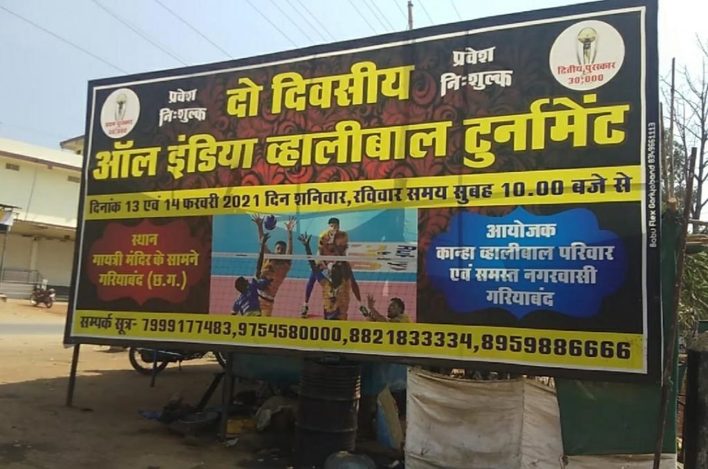 गरियांबद । कान्हा व्हालीबाल परिवार द्वारा 13 एवं 14 फरवरी को दो दिवसीय अखिल भारतीय व्हालीबाल प्रतियोगिता का आयोजन गायत्री मंदिर के पास गरियबन्द में किया गया है। इसका शुभारंभ समारोह 13 फरवरी को प्रातः 10 होगा, जिसके मुख्य अतिथि जिलाधीश नीलेश क्षीरसागर, अध्यक्ष पुलिस अधीक्षक भोजराज पटेल, विशेष अतिथि नगरपालिका अध्यक्ष गफ्फार मेमन के द्वारा किया जाना है उक्त प्रतियोगिता की तैयारी पूरी कर ली गई है जिसके विजेता टीम को 50 हजार रु. एवं उपविजेता टीम 30 हजार रु. की राशि प्रदान की जाएगी। नगर एवं अंचल के खेल प्रेमियों को इस प्रतियोगिता का बेसब्री से इंतजार है इसमें छत्तीसगढ़ के अलावा अन्य राज्यों की कुल 10 टीमें अपना जौहर दिखायेगी जिसमें कामठी (नागपुर) गुजरात, उत्तर प्रदेश रेलवे, साई पंजाब, आर्मी पुणे, ग्वालियर, छत्तीसगढ़ पुलिस, बी .एस. पी . भिलाई शामिल है इसी तरह इस अखिल भारतीय प्रतियोगिता में 4 गर्ल्स टीम भी हिस्सा लेगी। इस प्रतियोगिता का आयोजन कान्हा व्हालीबाल परिवार के द्वारा किया जा रहा है।