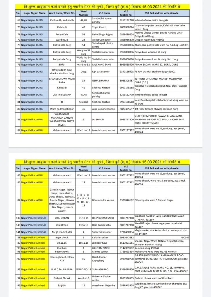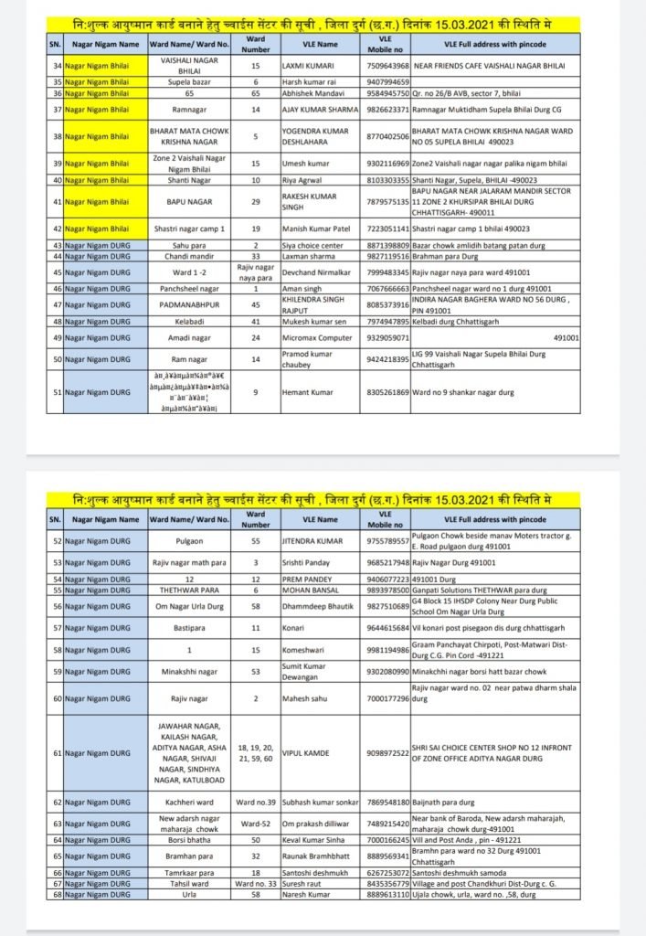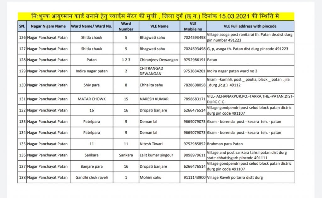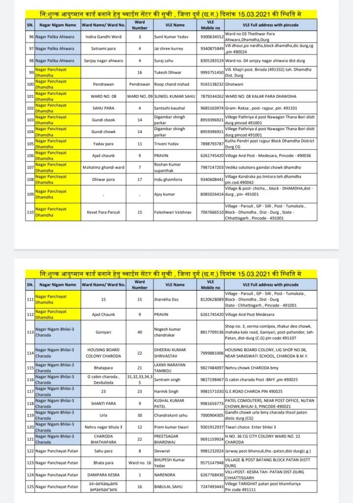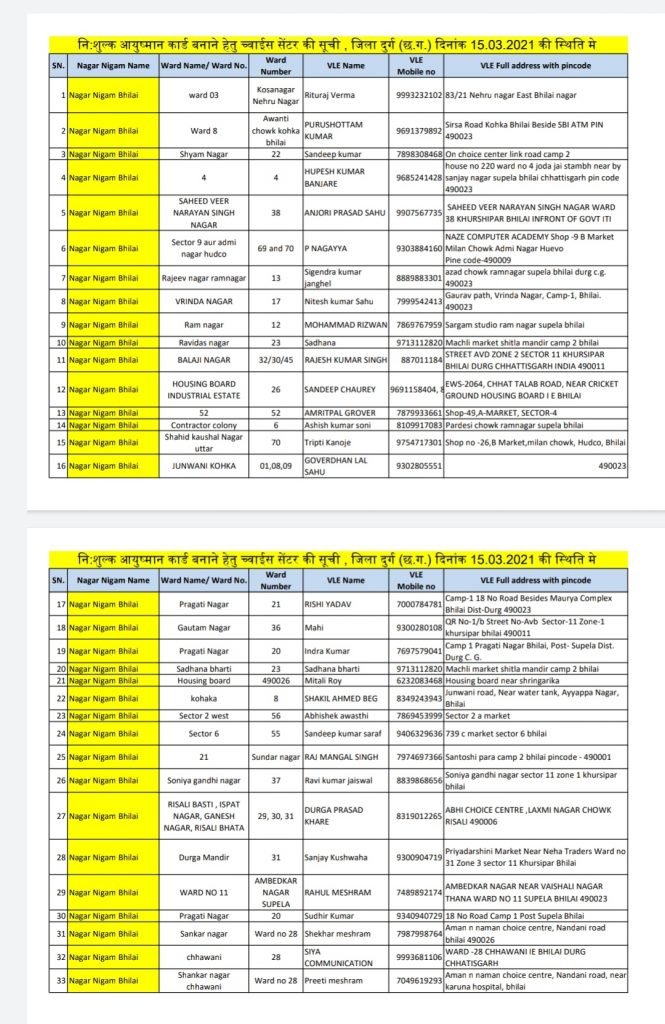 आयुष्मान कार्ड बनाने हेतु शहरी क्षेत्रों मे स्थित च्वाईस सेंटर की सूची Posted on March 15, 2021March 15, 2021Author kuldeepkurre360@gmail.com 0 आयुष्मान कार्ड बनाने हेतु शहरी क्षेत्रों मे स्थित च्वाईस सेंटर की सूची