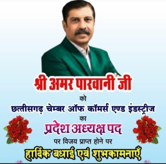 छत्तीसगढ़ चेंबर ऑफ कॉमर्स एंड इंडस्ट्रीज के चुनाव में जय व्यापार पैनल के अमर परवानी जीते अध्यक्ष पद