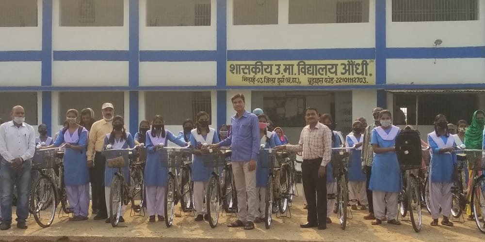 पाटन।छत्तीसगढ़ शासन के निशुल्क साइकिल योजना के अंतर्गत संस्था शासकीय उच्चतर माध्यमिक शाला औंधी विकास खण्ड पाटन , जिला दुर्ग ( छ.ग.) में दिनांक 22-03-2021 , दिन सोमवार को 36 छात्राओं को निःशुल्क साइकिल वितरण किया गया। कार्यक्रम में प्रमुख रूप से शाला विकास समिति के अध्यक्ष गजाधर वर्मा , विधायक प्रतिनिधि दिनेश टंडन , प्राचार्य आर.के.श्रीवास्तव शाला स्टाप चंद्राकर सर, वर्मा सर ,मैडम पुनेश्वरी साहु एवं छात्राओं के पालक वह गणमान्य नागरिक उपस्थित थे। उपस्थित अतिथियों ने कहा कि शासन की योजनाओं का लाभ अब छात्राओं को मिलने लगा है। इसमें स्कूल आने में हो रही परेशानी से छात्राओं को निजात मिली है।
