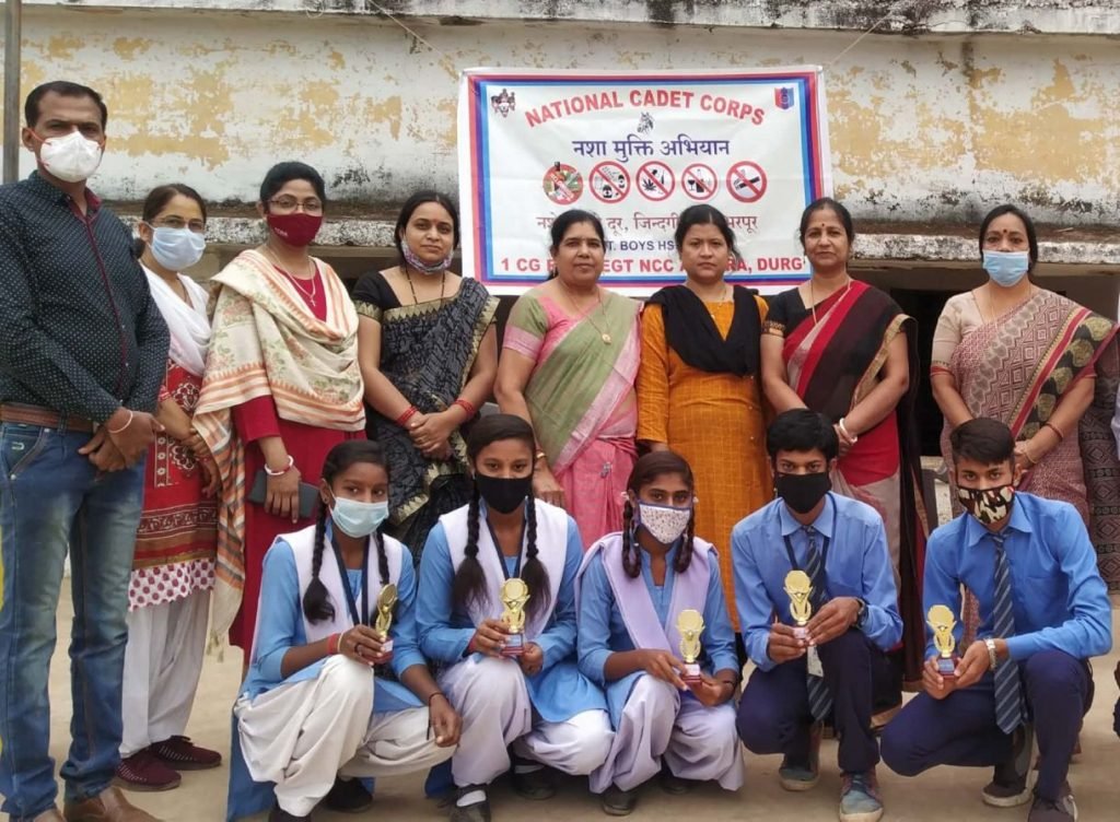 पाटन। शासकीय उत्तर माध्यमिक विद्यालय सेलुद (बालक)के एनसीसी कैडेट्स ने केयरटेकर प्रवीण कुमार वर्मा के निर्देशन में छत्तीसगढ़ घुड़सवार रेजीमेंट एनसीसी अंजोरा के निर्देश पर नशा मुक्ति अभियान पर जन जागरण के लिये रैली का आयोजन किया। जिसमें नशा के दुष्प्रभाव नशे से होने वाली बीमारियों और नशा से कैसे मुक्त हुआ जा सकता है उस विषय पर जनमानस को जानकारी दी। साथ ही नशा मुक्ति अभियान पर विद्यालय स्तरीय विभिन्न प्रतियोगिताओं का आयोजन किया गया। जिसमें निबंध प्रतियोगता में प्रथम शिवानी ठाकुर, द्वितीय मानस वैष्णव,पोस्टर प्रतियोगिता में प्रथमविकास पटेल द्वितीय मानसी यादवरंगोली प्रतियोगता में प्रथम सोम कुमार द्वितीय सविता देशमुख रहे। सभी प्रतिभागियों को प्राचार्य श्रीमती एमबी बंजारे ,उपप्राचार्य एल.एन साहू द्वारा पुरस्कार दिया गया। इस मौके पर विद्यालय के सभी शिक्षक शिक्षिकाएं स्टाफ उपस्थित थे ।