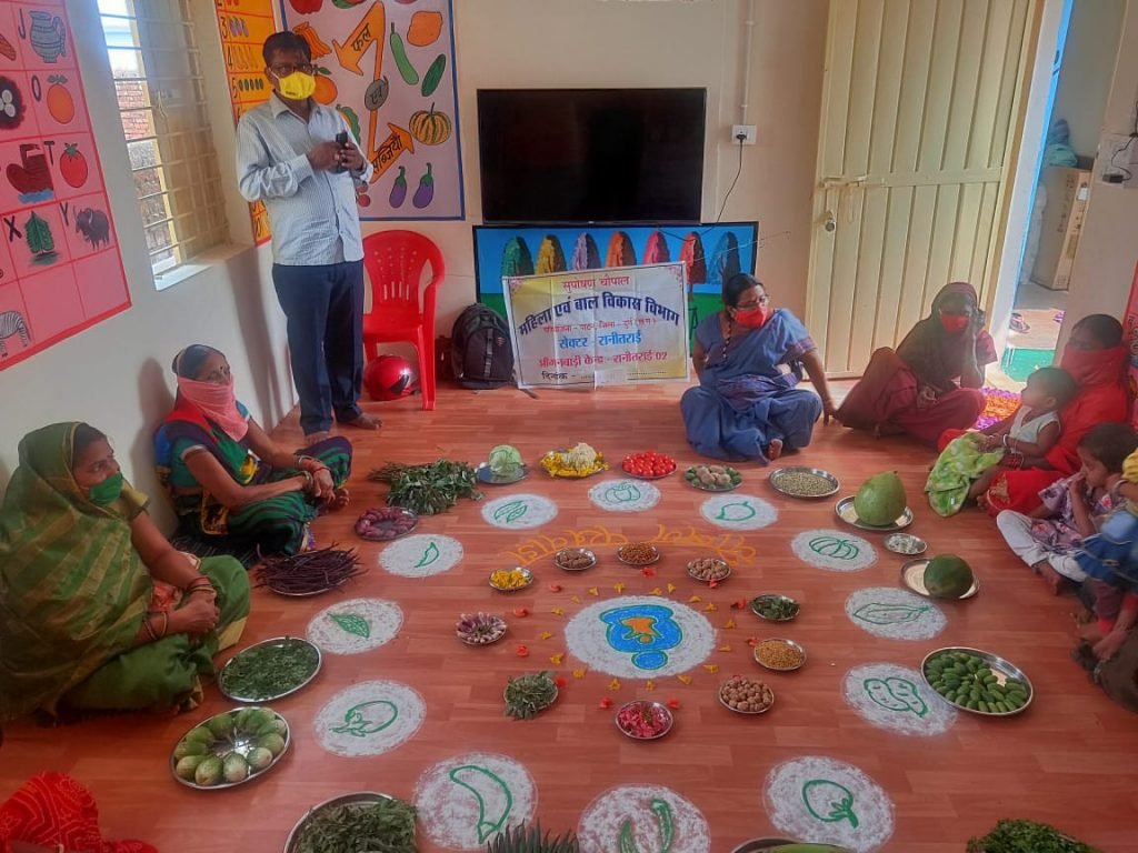 पाटन। ग्राम रानितराई के नंद घर- 2 में कोविड 19 को ध्यान में रखते हुए पोषण पखवाड़ा सत्र का आयोजन किया गया। इस मौके पर निर्मल जैन (सरपंच) के द्वारा पोषण पखवाड़ा पर गर्भवती एवम धात्री महिलाओ को पोषण आहार पर विशेष जानकरी दी गई। इसके पश्चात श्रीमती भोजा टिकरिहा (नंद घर कार्यकर्ता) जी द्वारा नंदघर में बने रंगोली व हरी पत्तेदार सब्जियों की प्रदर्शनी के माध्यम से लोगो को सुपोषण के प्रति जागरूक किया गया। अभिभावकों को नियमित खान पान व 0 से 6 वर्ष के बच्चों पर विशेष ध्यान देने के लिए प्रेरित किया गया साथ ही साथ गृह भेट के माध्यम से हितग्राहियो को THR व सुखा राशन वितरण किया गया।इस मौके पर गजाधर देशमुख,( क्लस्टर समन्वयक),अनुसुइया यादव ( सहायिका),शिवकुमारी (पंच) , जागेश्वरी (महिला पुलिस),गीता देवांगन, पुष्पा कश्यप , चुन्नी साहू, अजूजी देशलहरे ,मुन्नी देवांगन , रामेश्वरी यादव उपस्थित हुए।